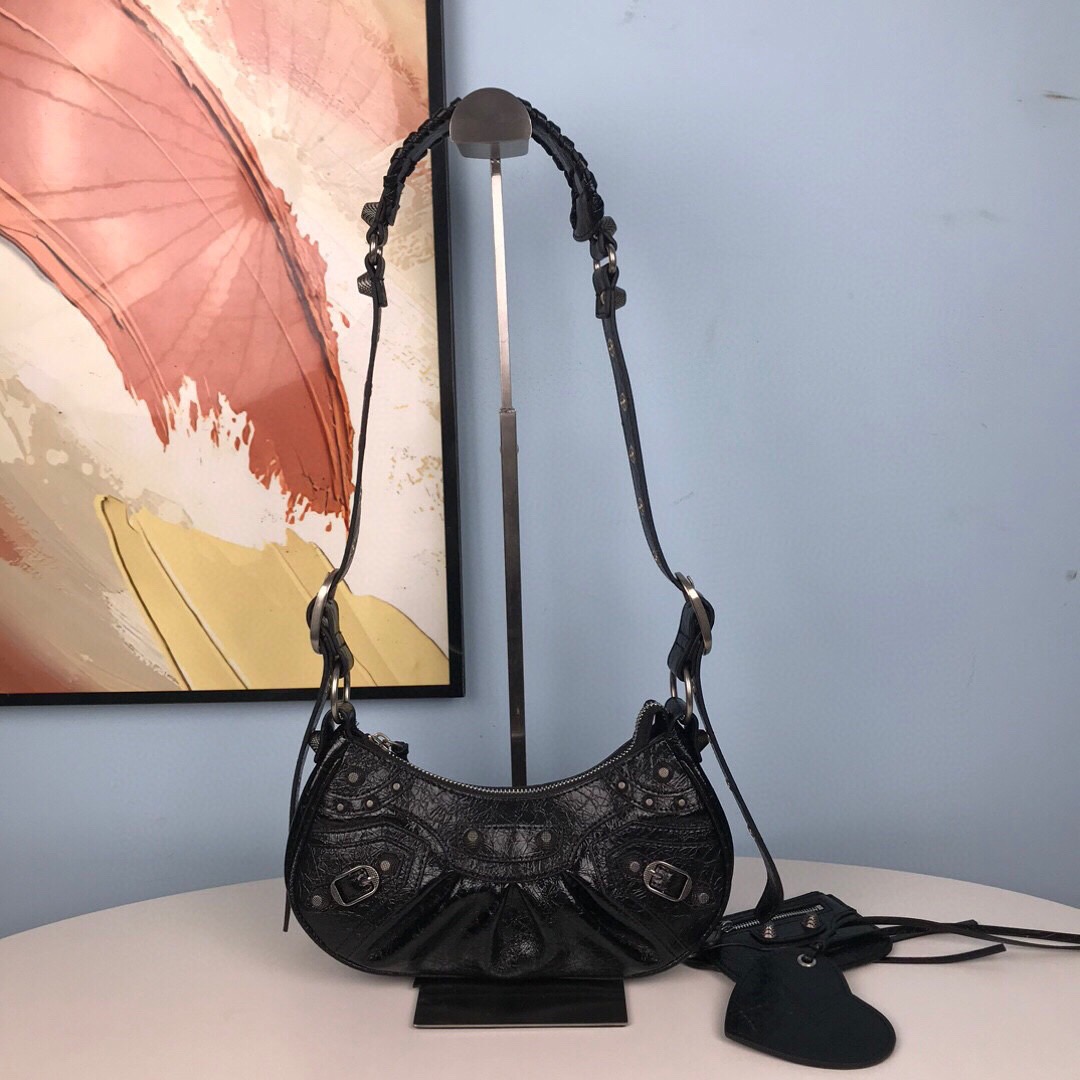 BALENCIAGA Le Cagole Small Studded Crinkled-leather Shoulder Bag