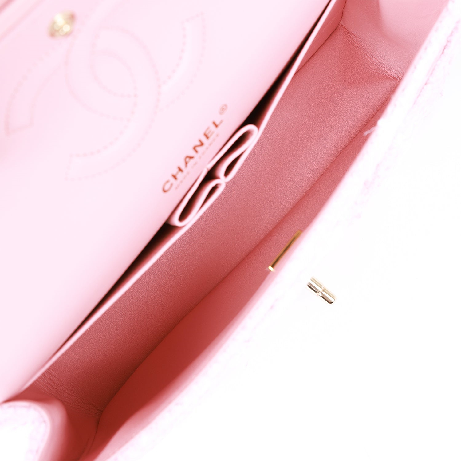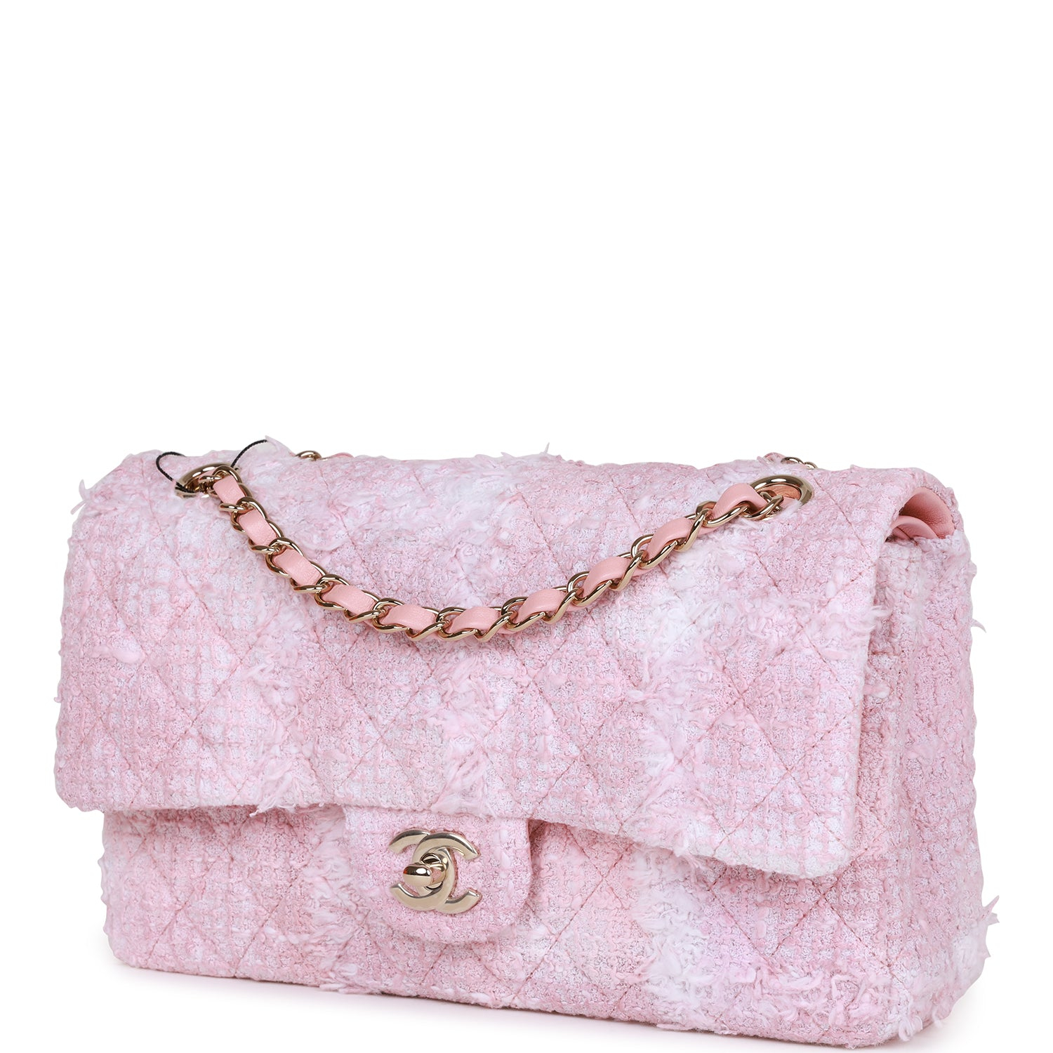Chanel Classic Flag Bag Medium Classic Double Flap Bag Rose Sakura Tweed Light Gold Hardware