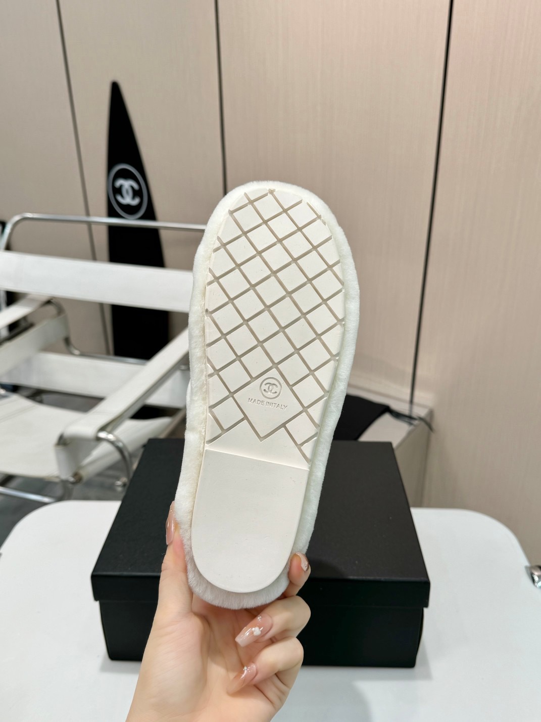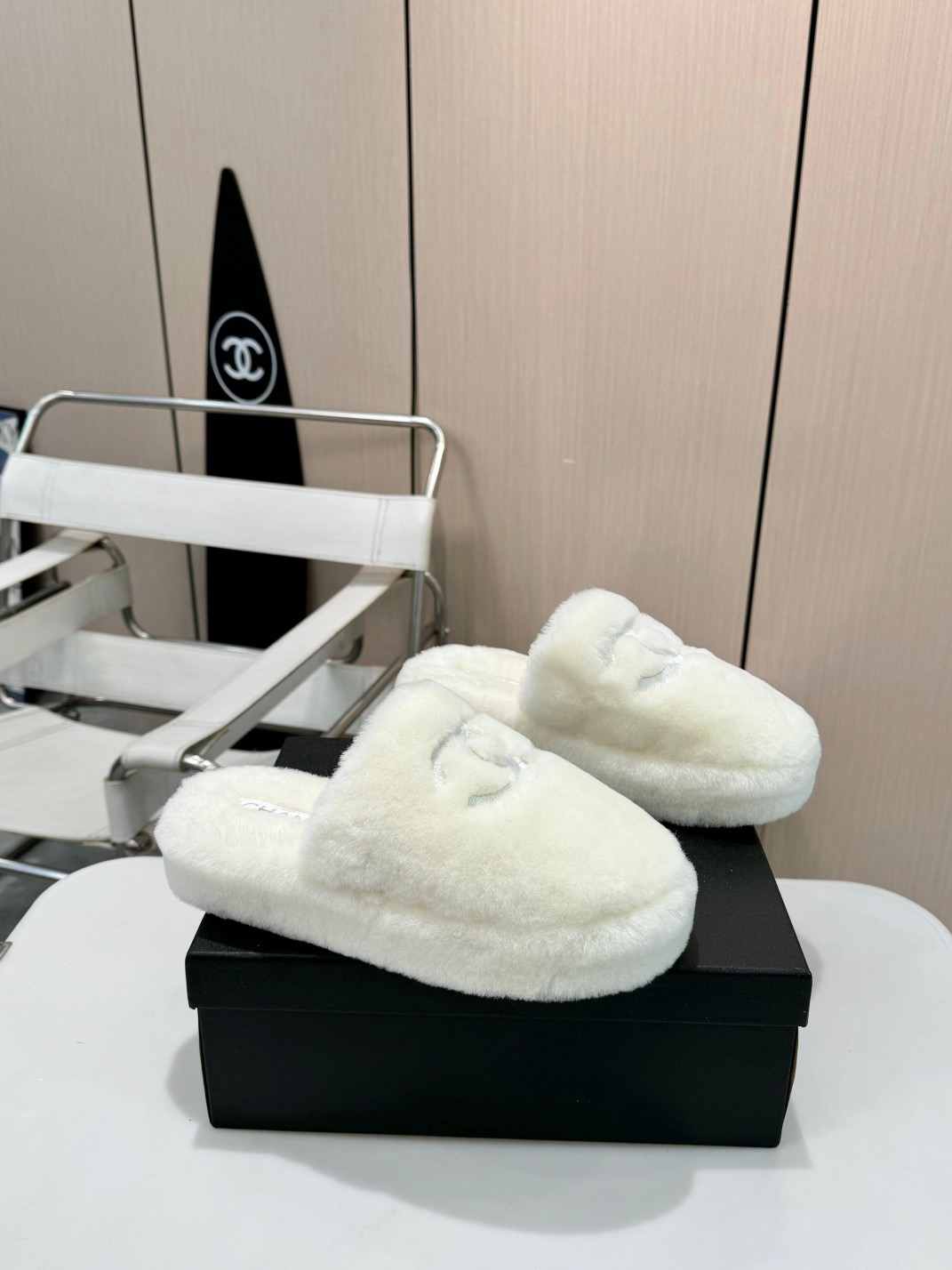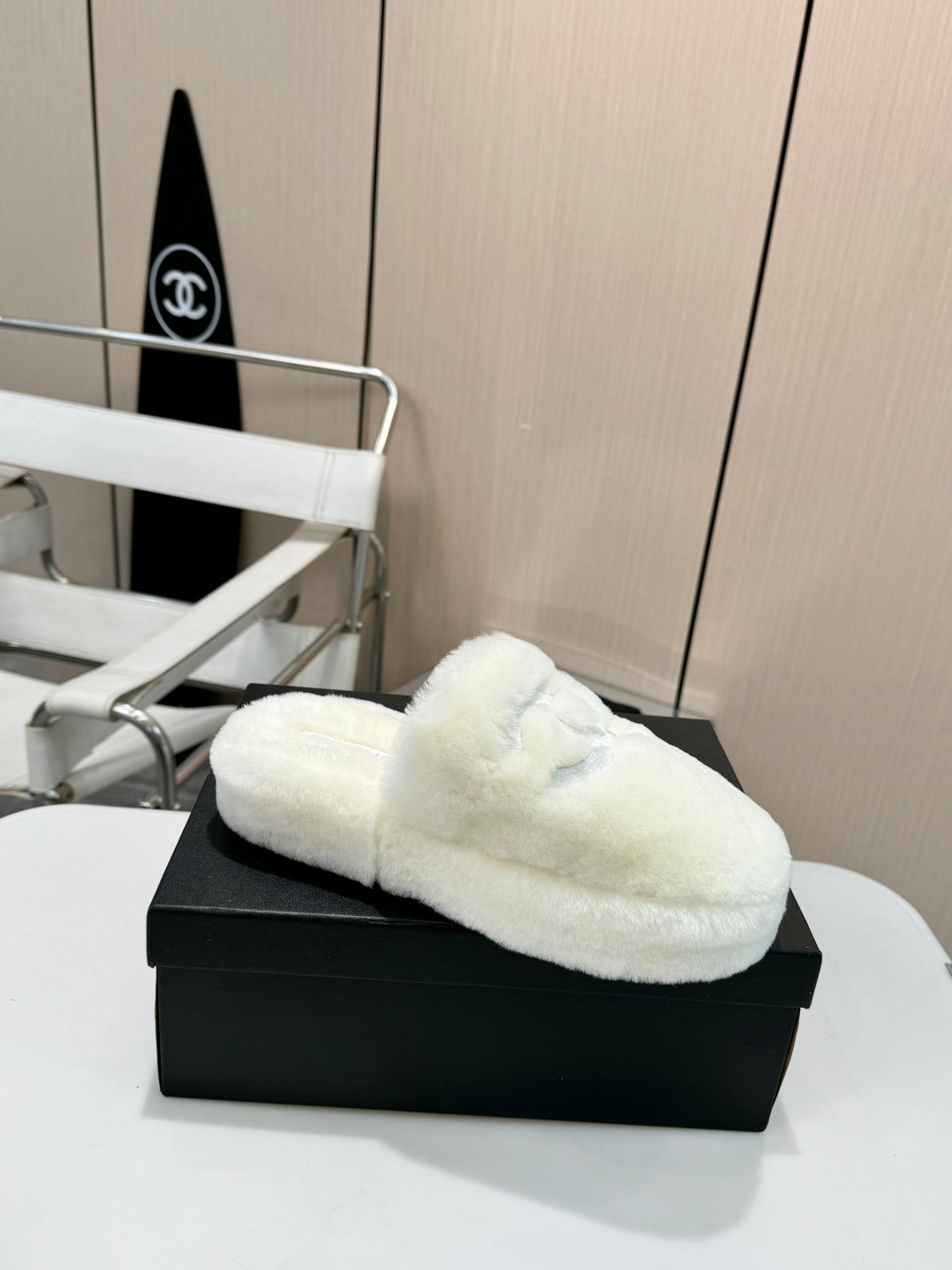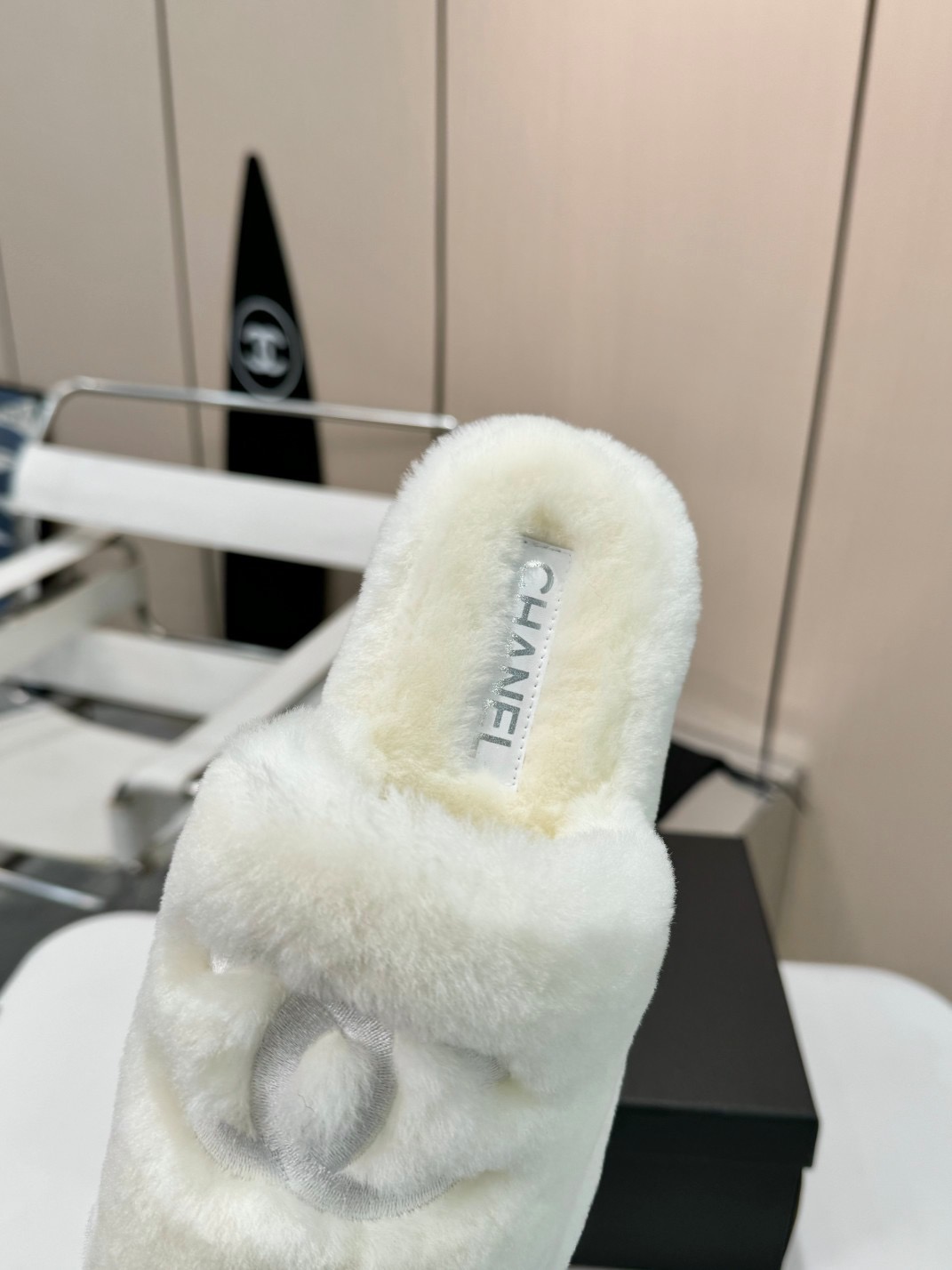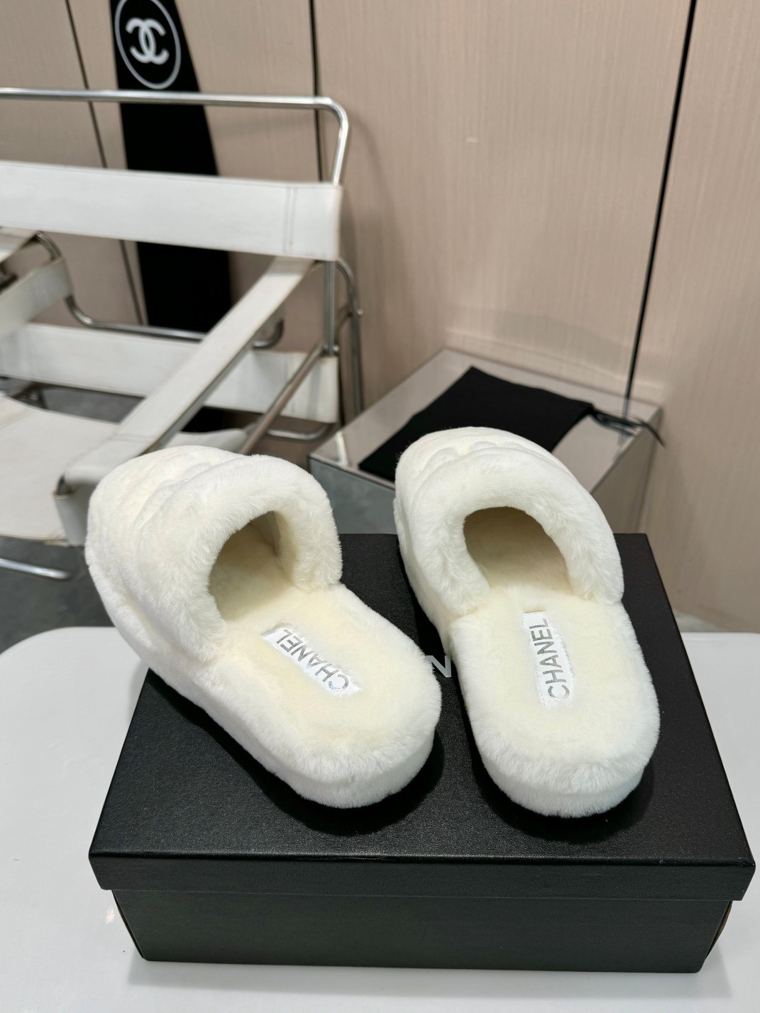 • Chanel Fuzzy-Topped Slippers