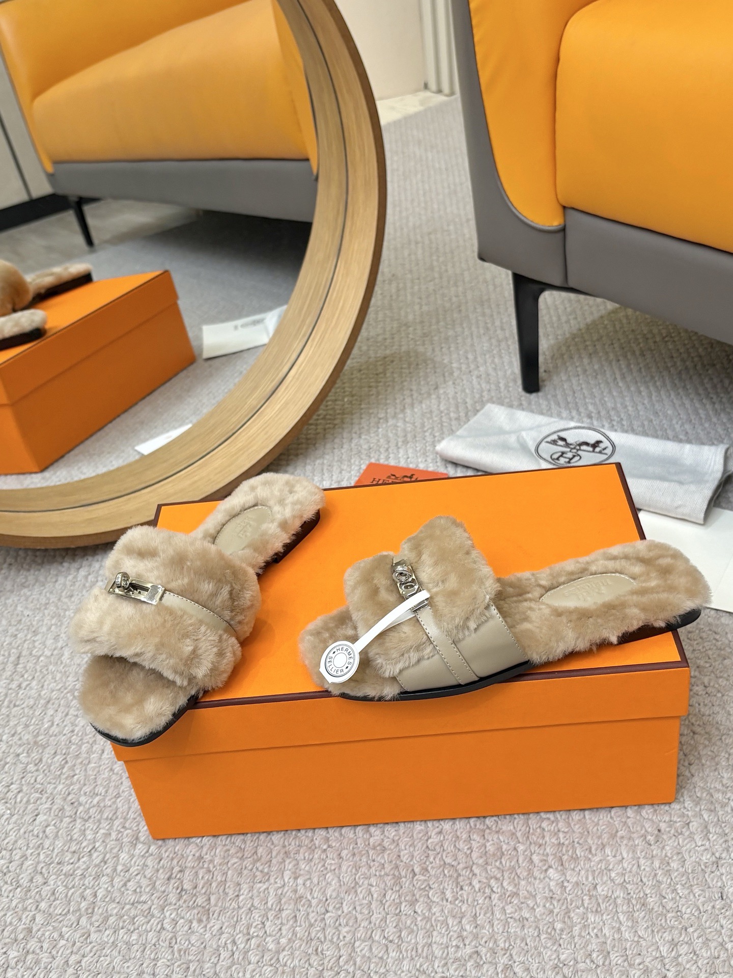 Hermès Furry Slippers