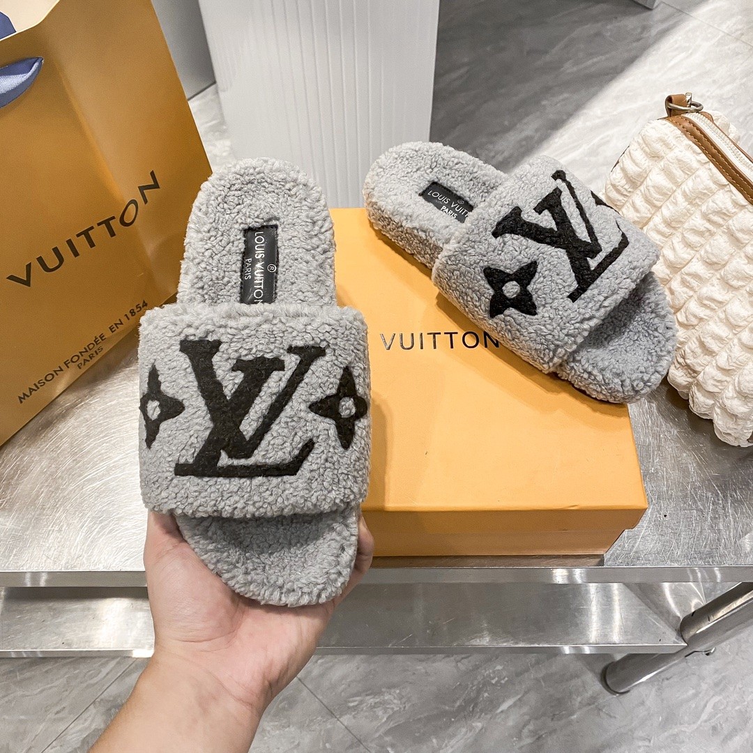 LV His & Hers Furry Slippers