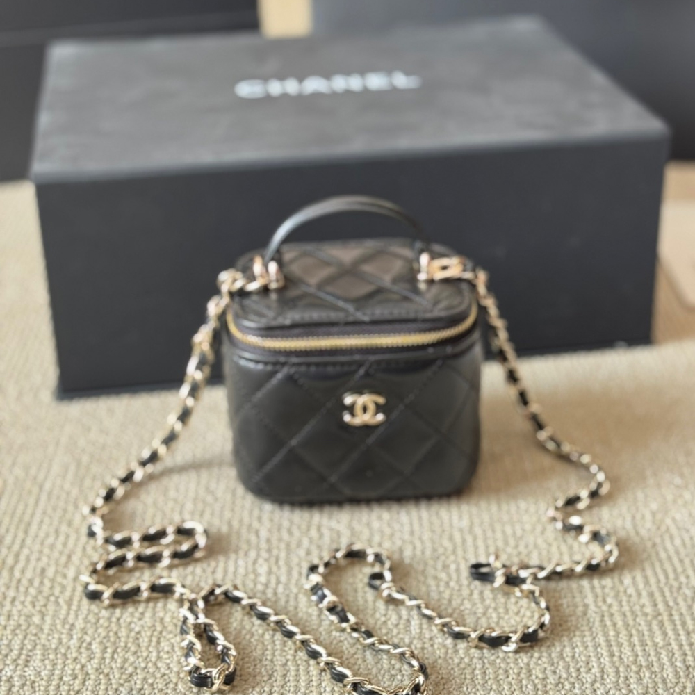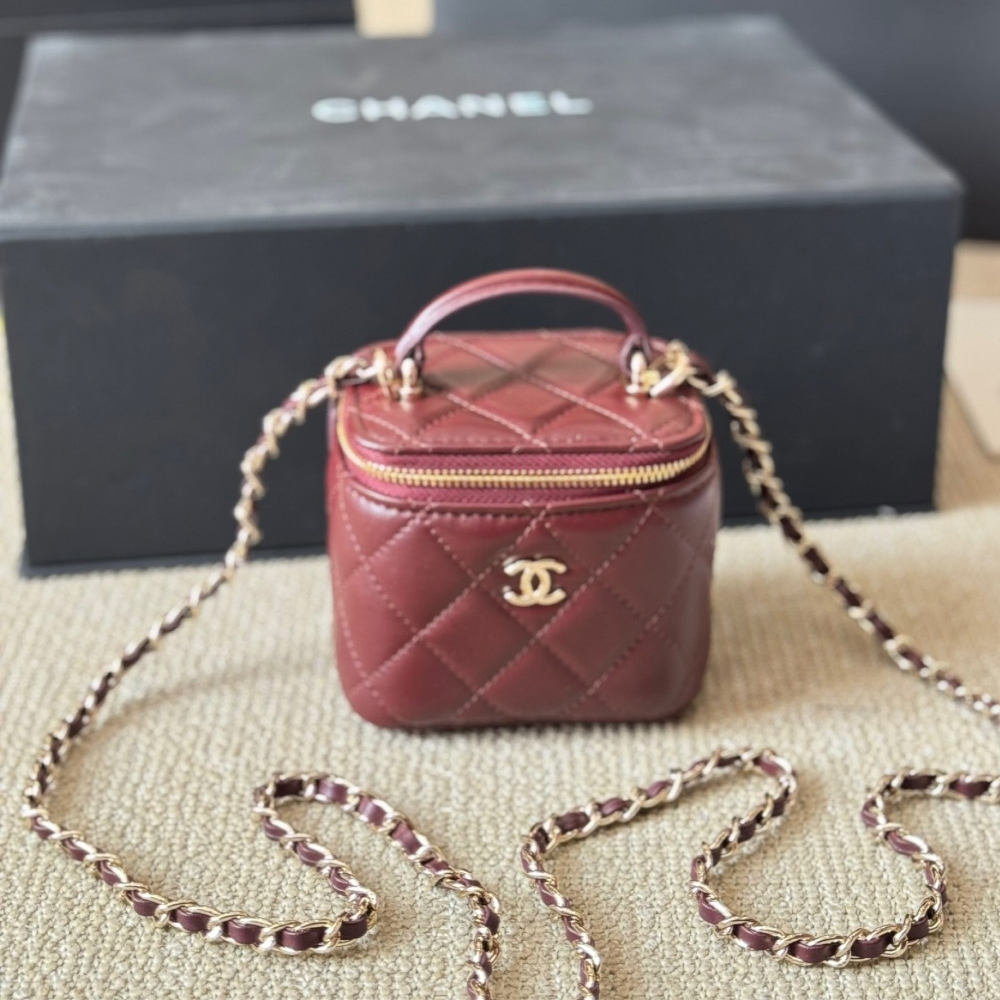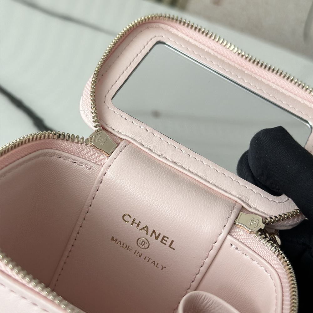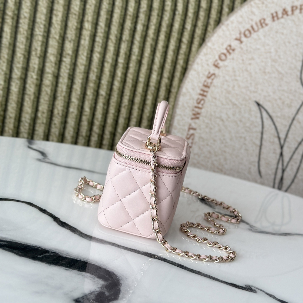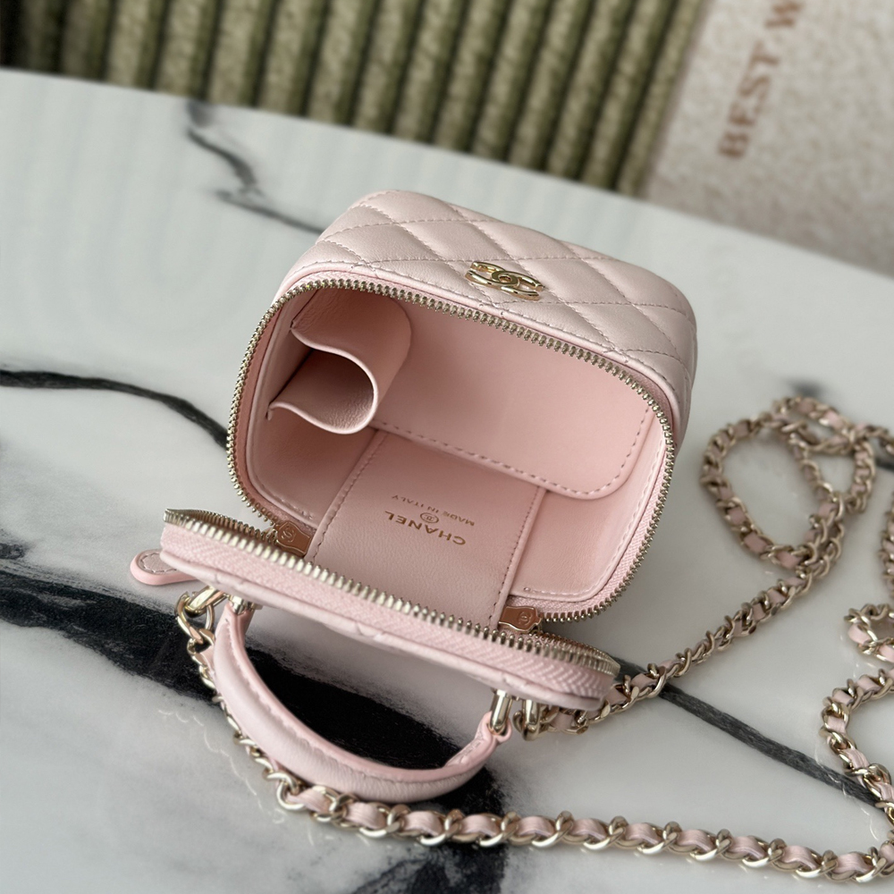 Chanel Lambskin Quilted Top Handle Mini Vanity Case With Chain Light Pink