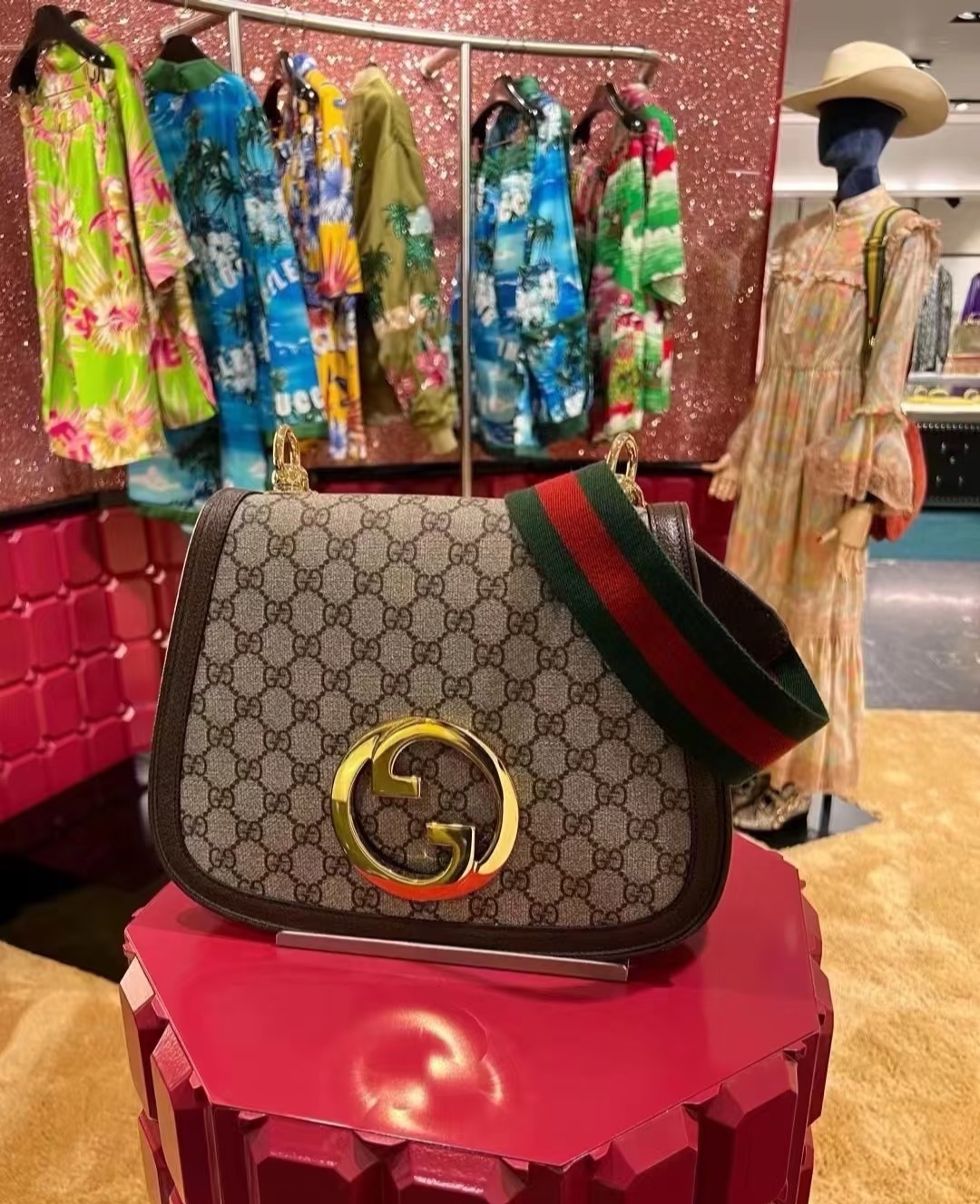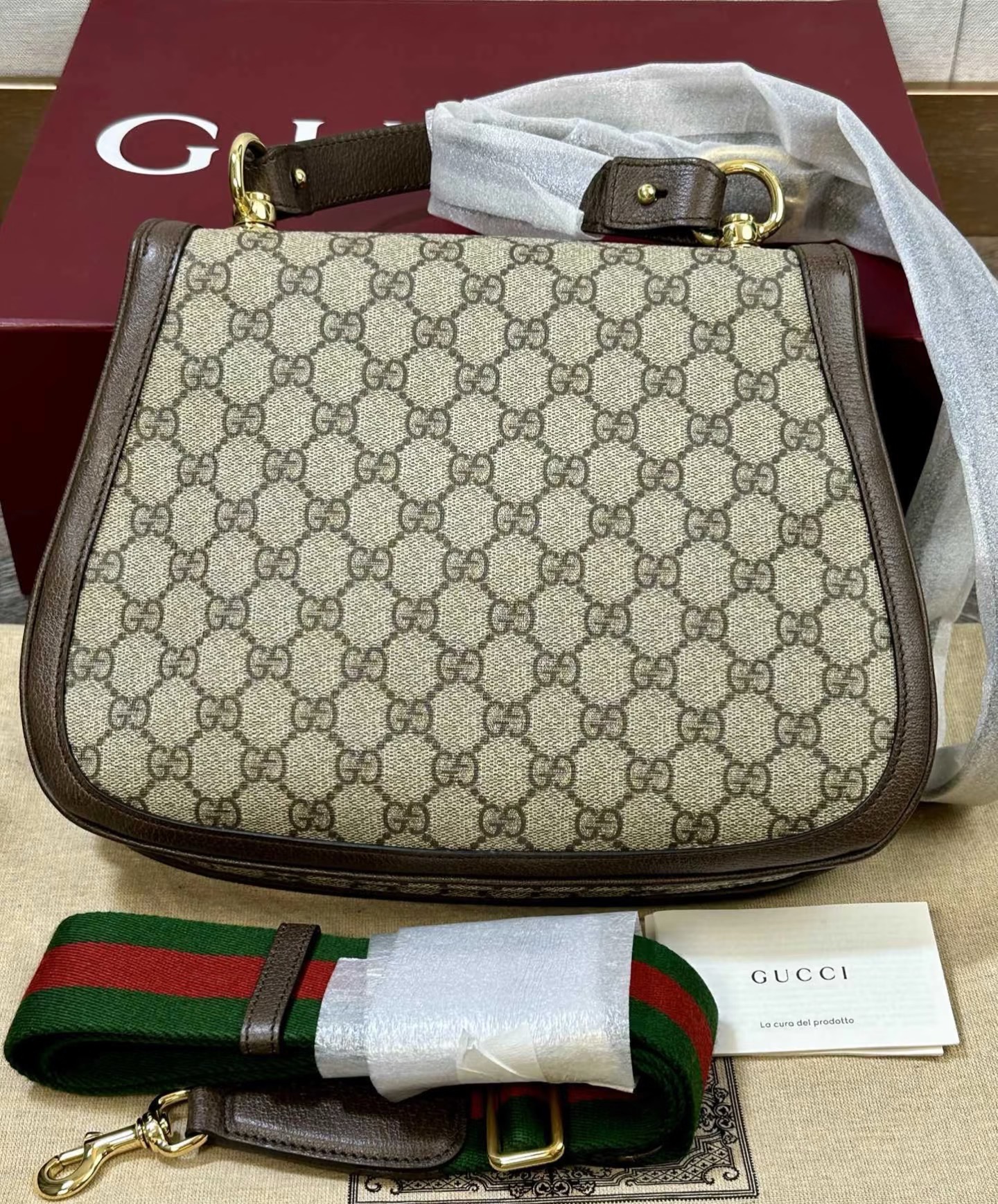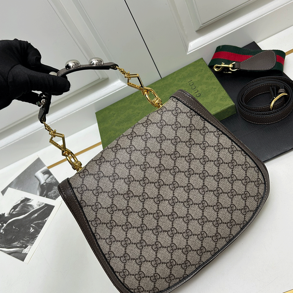 The brand's archive elements are reinterpreted with geometric shapes and presented in a variety of unique pieces. Gold-tone hardware adds a touch of elegant retro style to this piece, highlighting the classic and timeless design style, which complements the modern beauty of Hollywood shown on the fashion show. This GG Supreme canvas tote bag comes with two interchangeable shoulder straps.