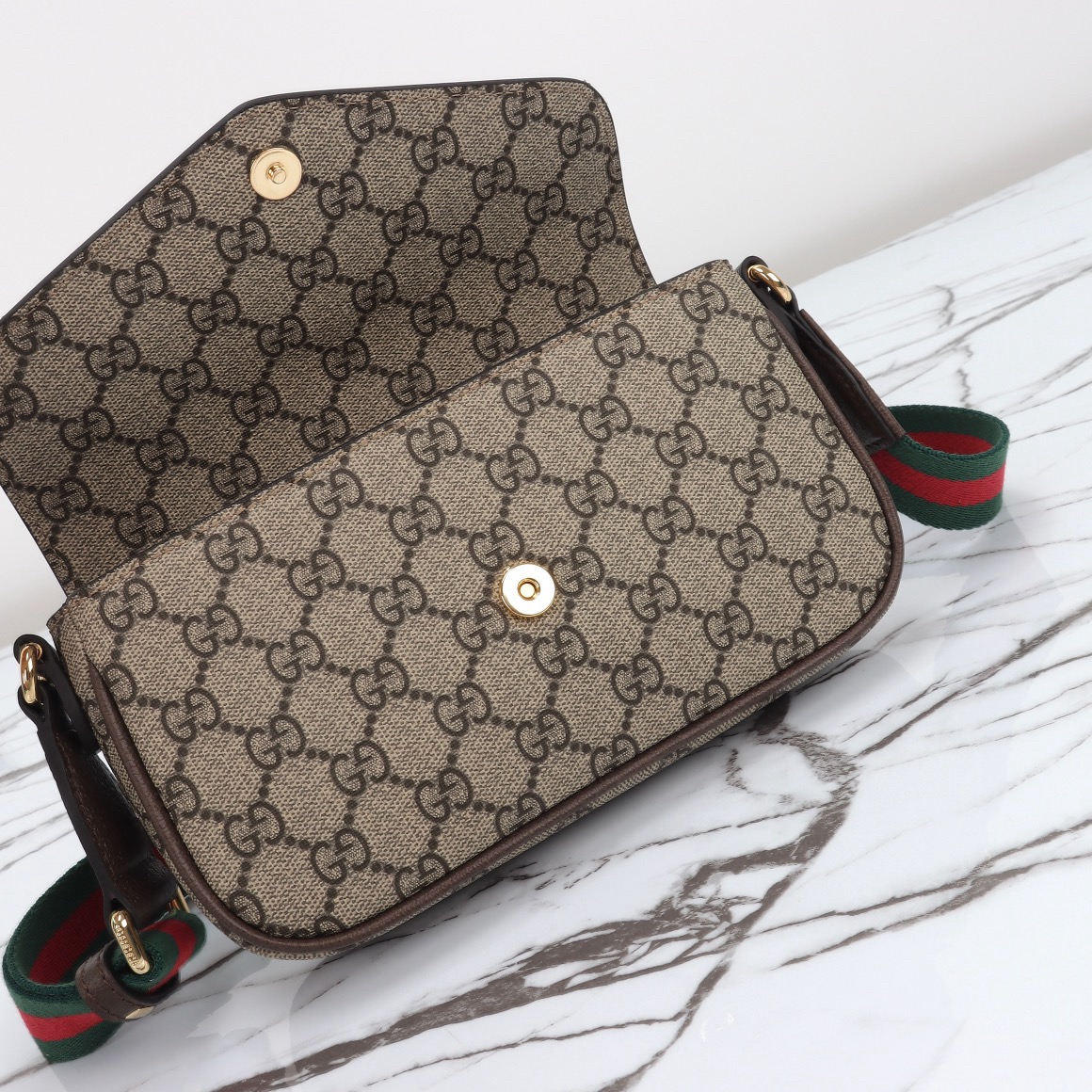 Gucci Ophidia Pochette in Beige and ebony Supreme