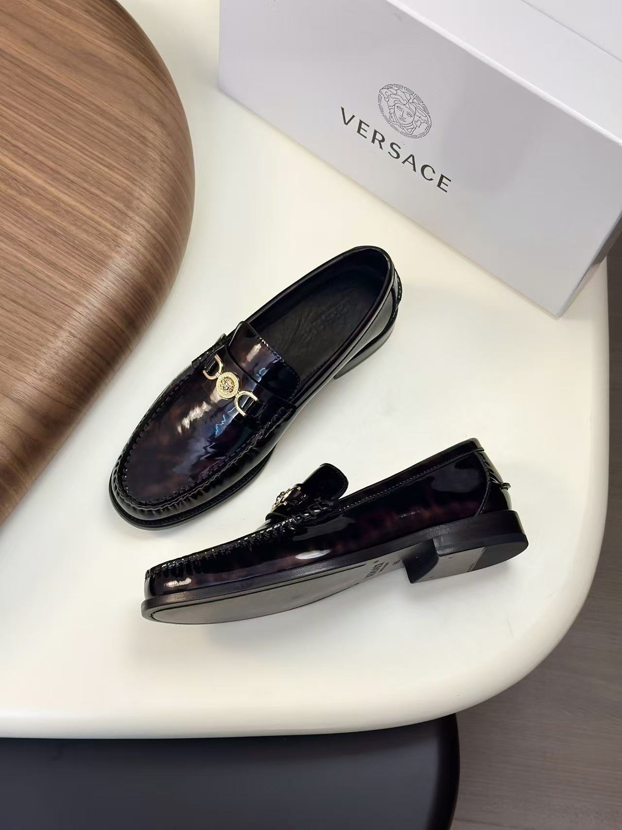 Versace Black Leather Medusa 95 Loafers