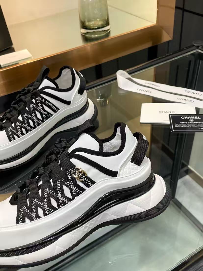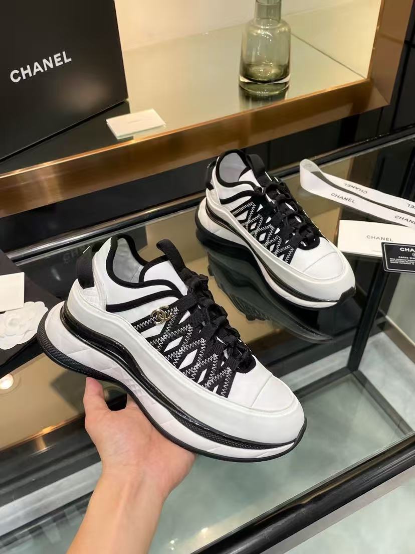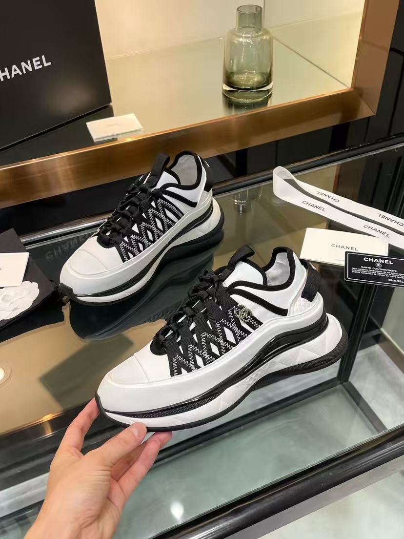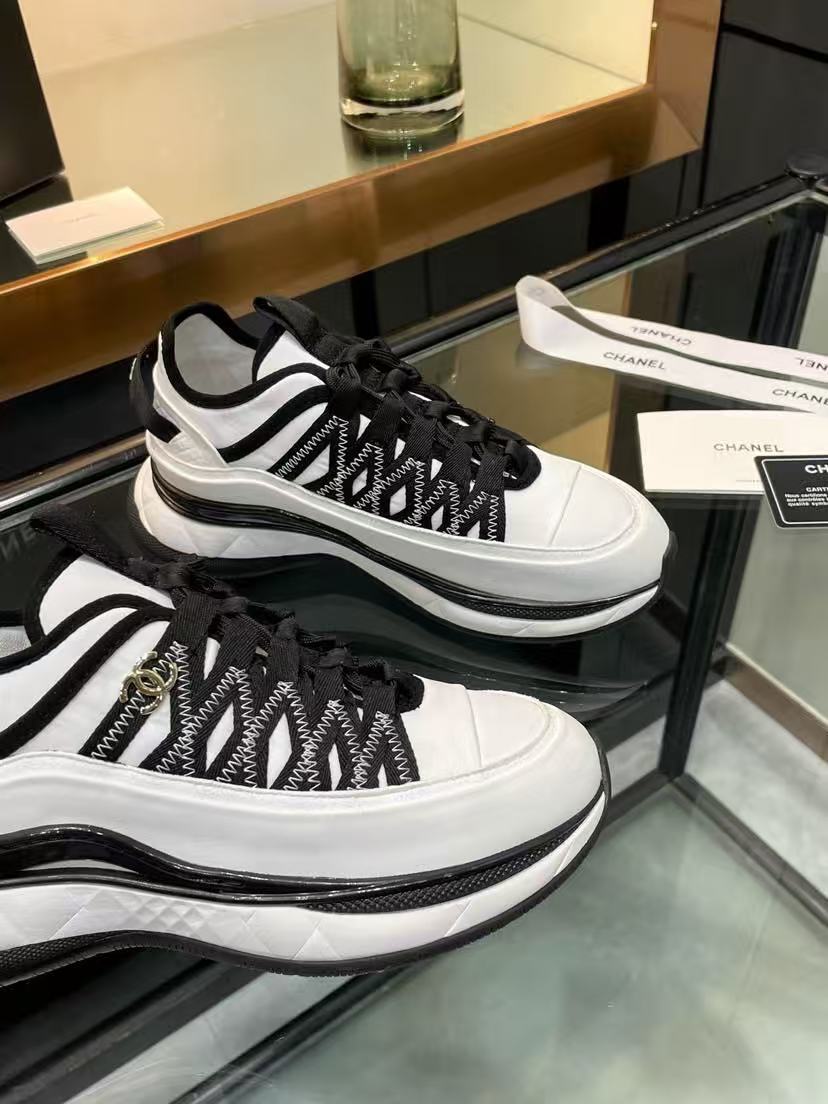 Chanel Fabric Suede Sneakers Black-White