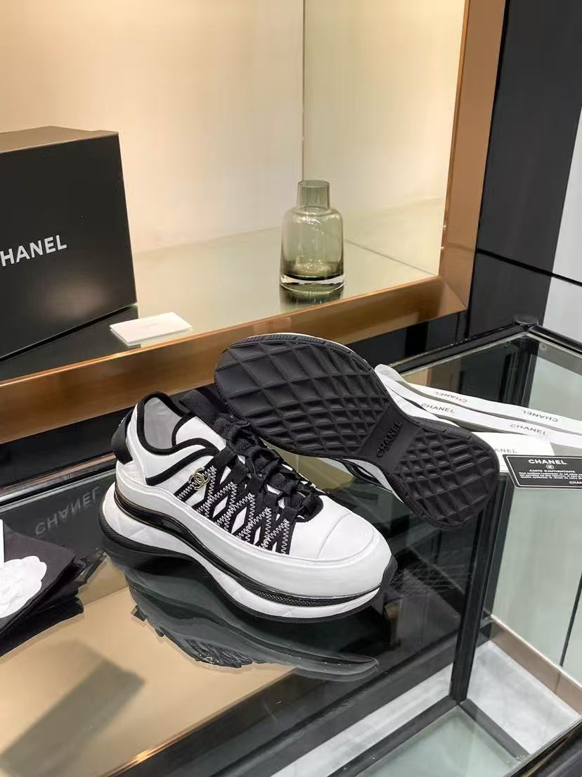 Chanel Fabric Suede Sneakers Black-White