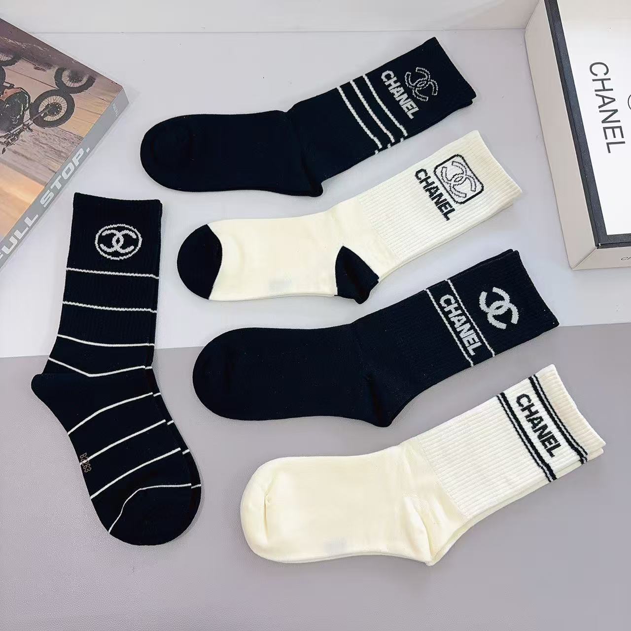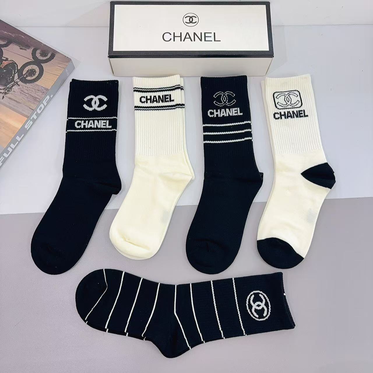 Chanel Embroidered Knee-High Socks [5 pairs per box]