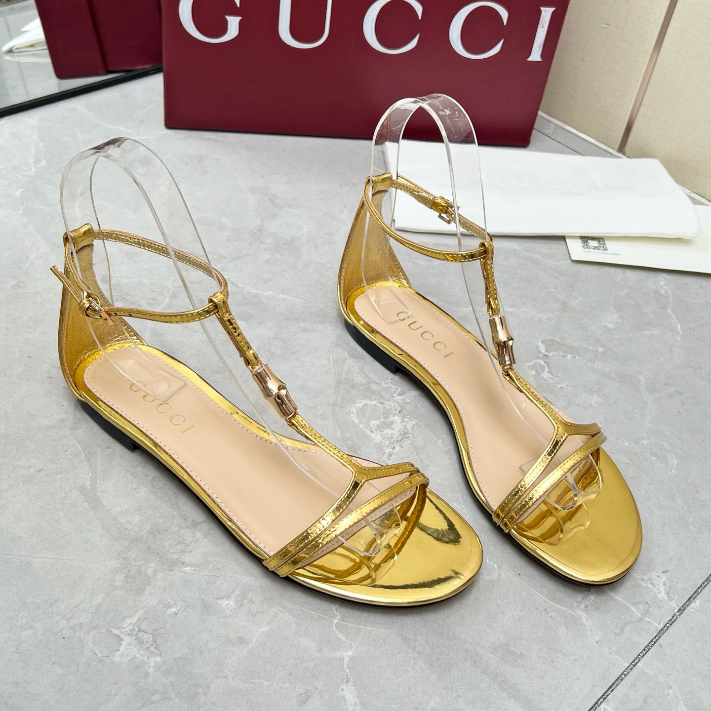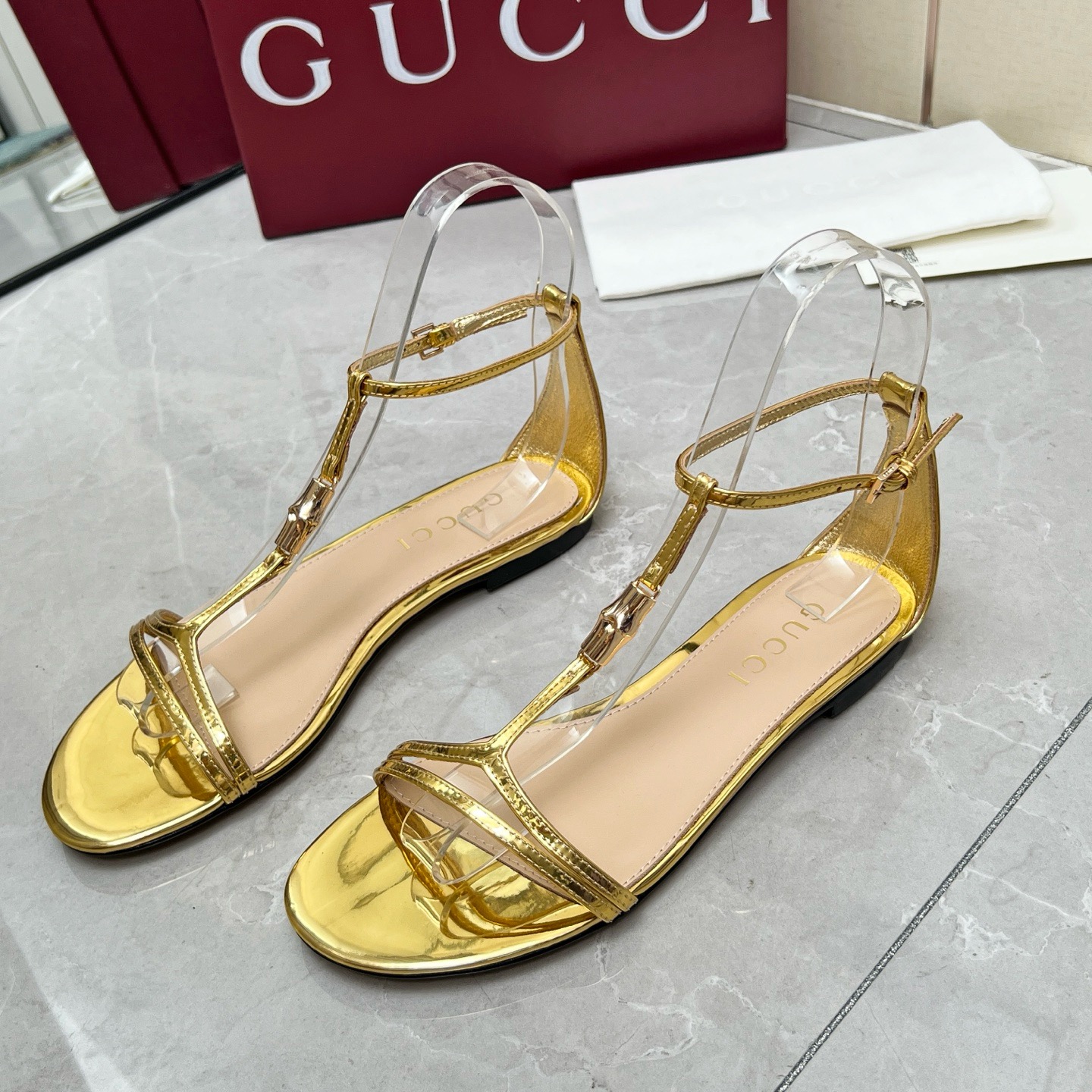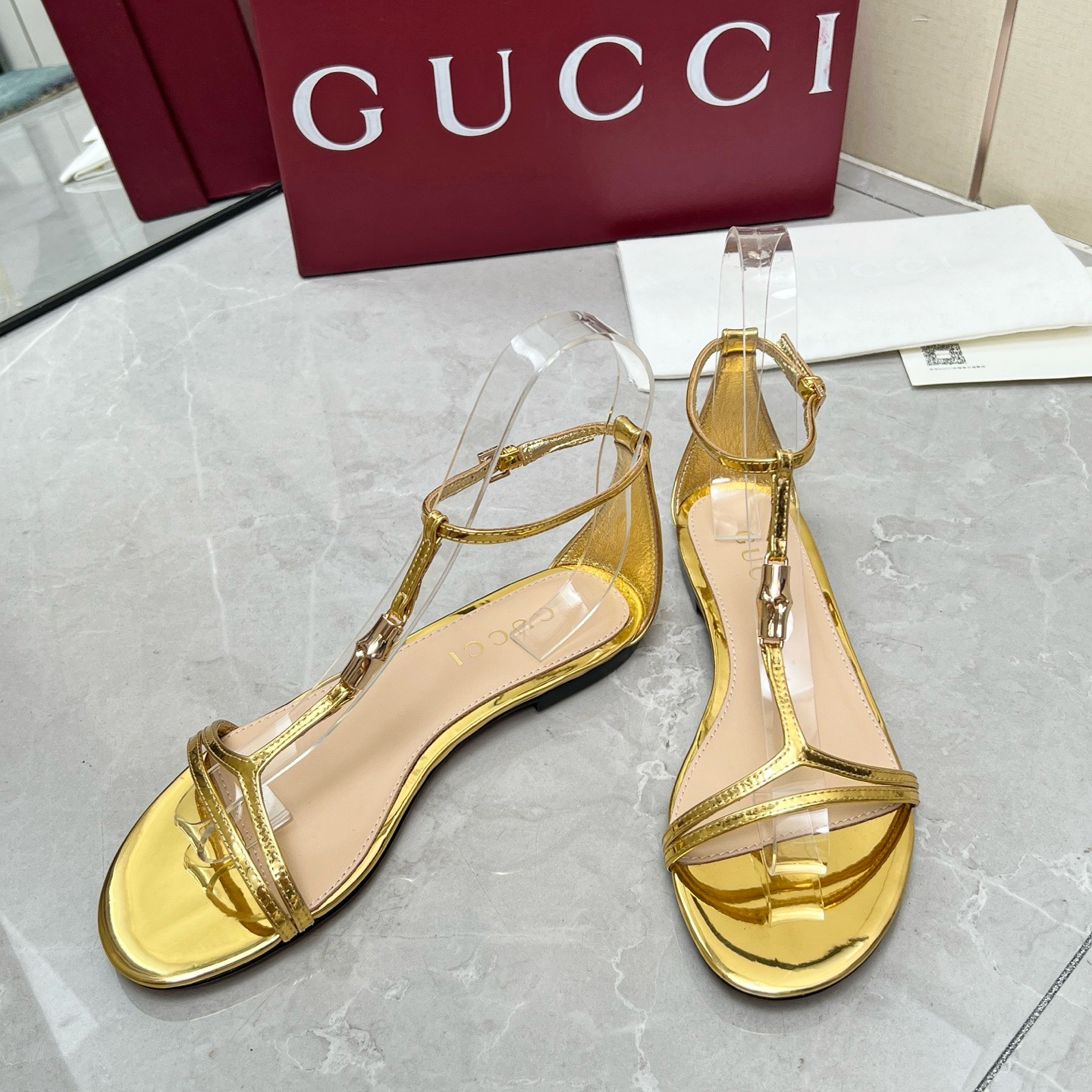 Gucci White bamboo leather sandals