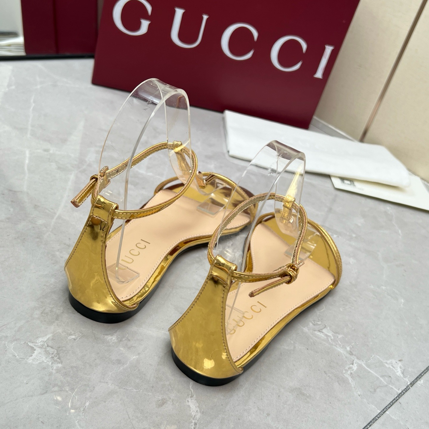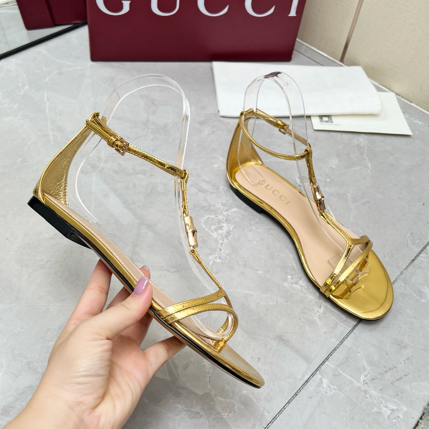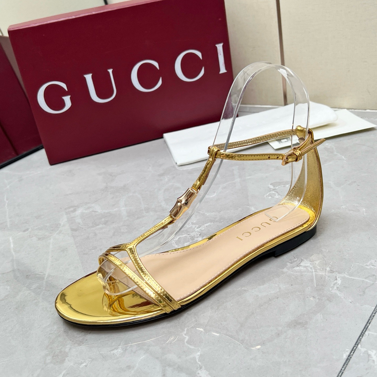 Gucci White bamboo leather sandals