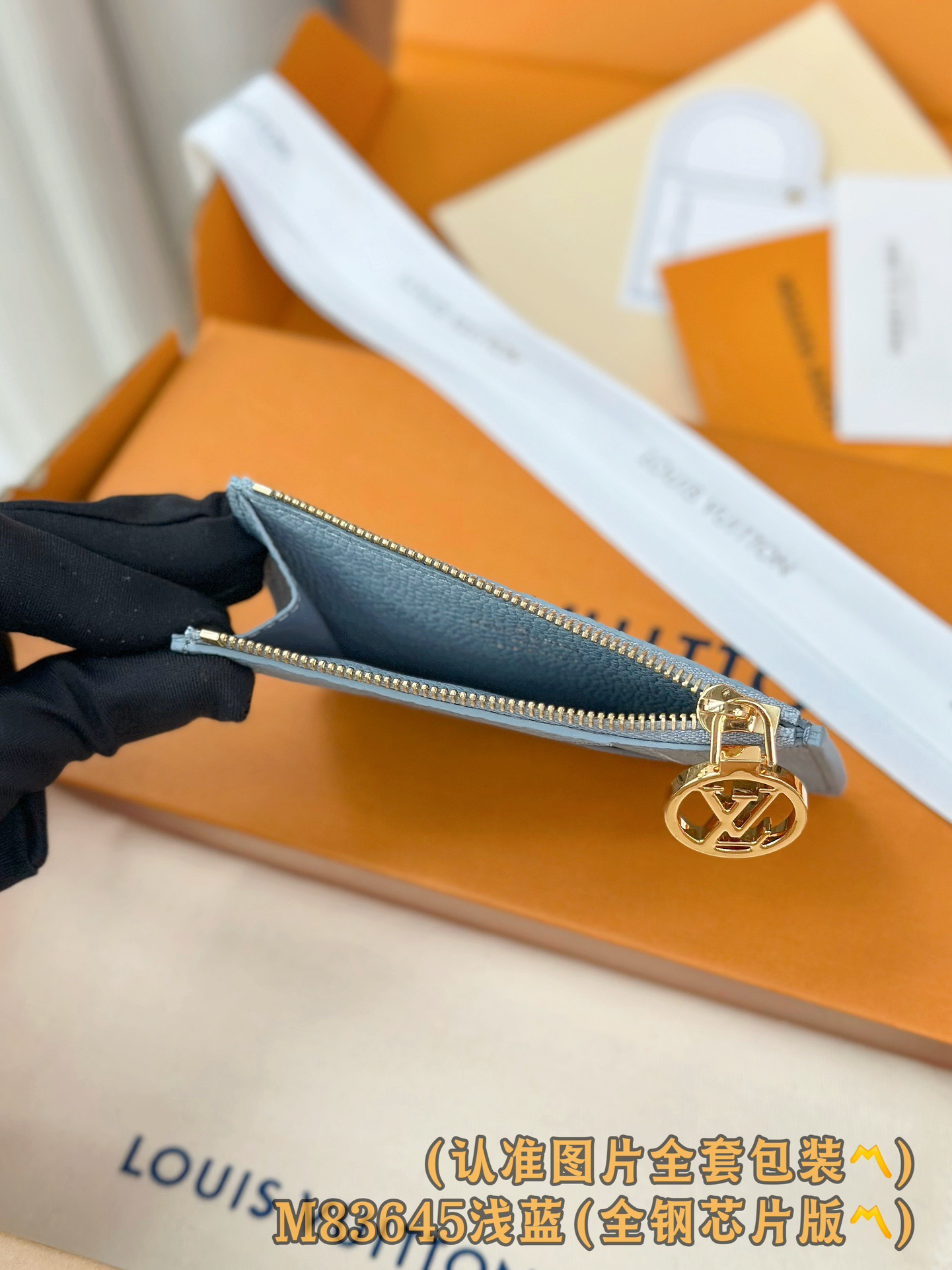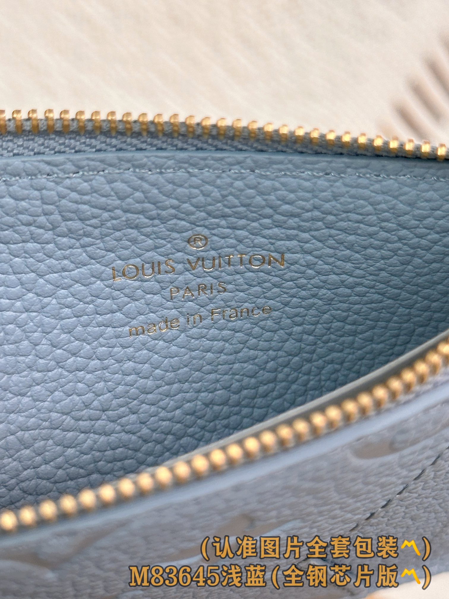 leather lining and decorated with the iconic gold metal LV Circle logo zipper pull.