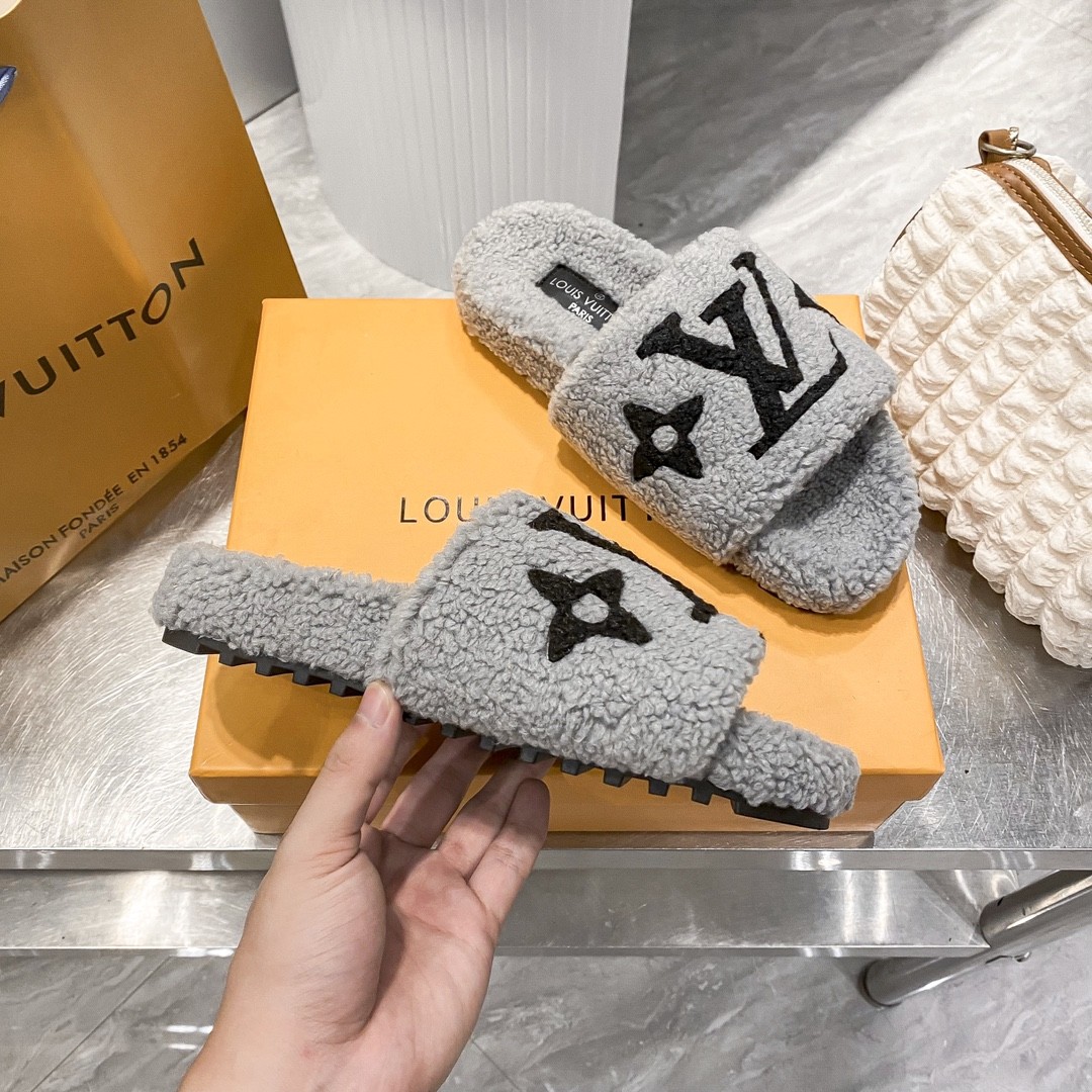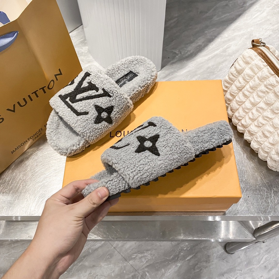 • LV His & Hers Furry Slippers Sandals