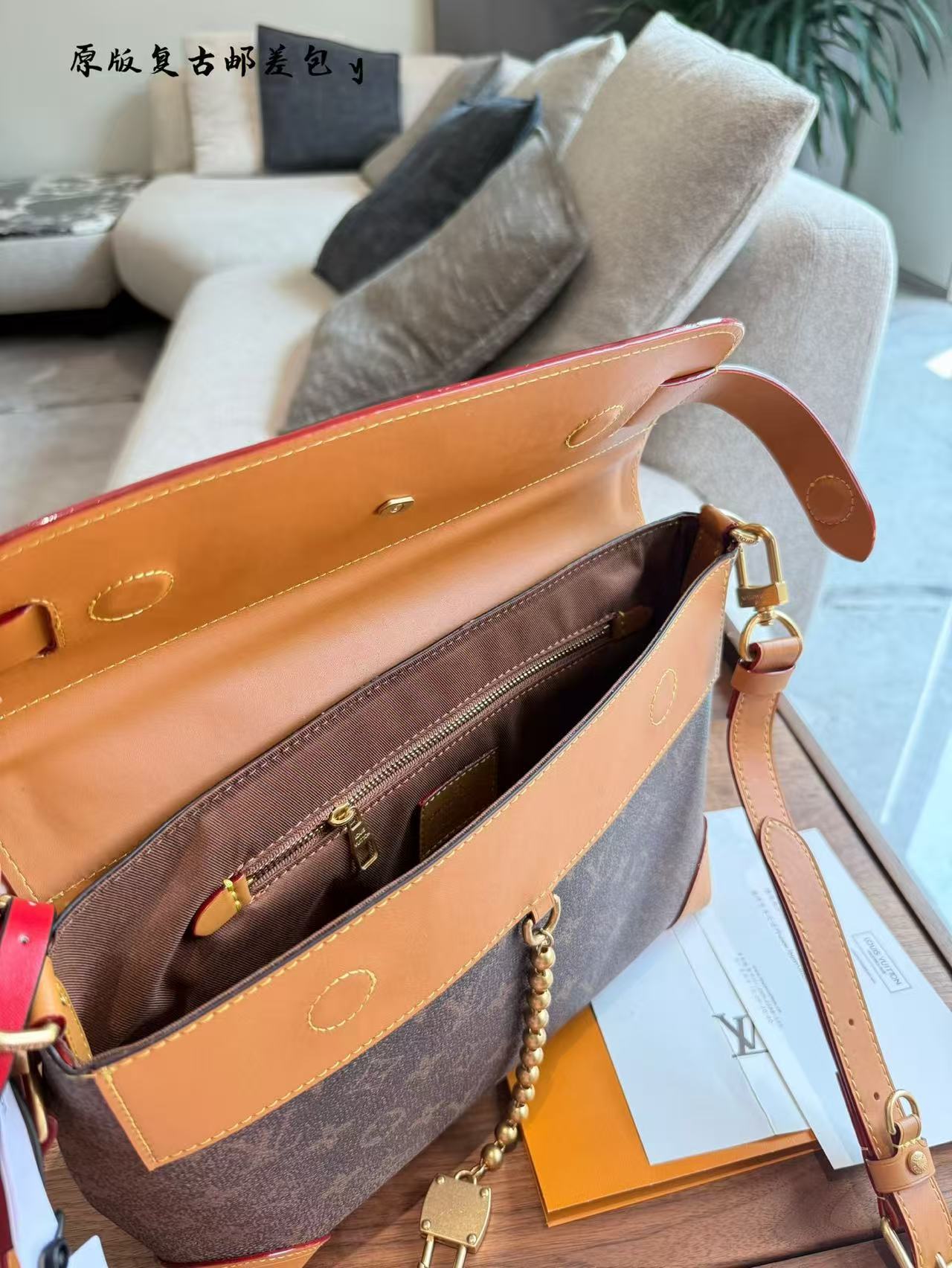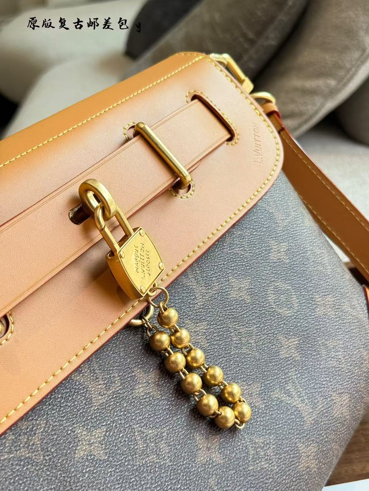 DetailDazzling beaded decoration, L.Vuitton logo embossing, and trims~Easily manages street photography or styling~28cm double box