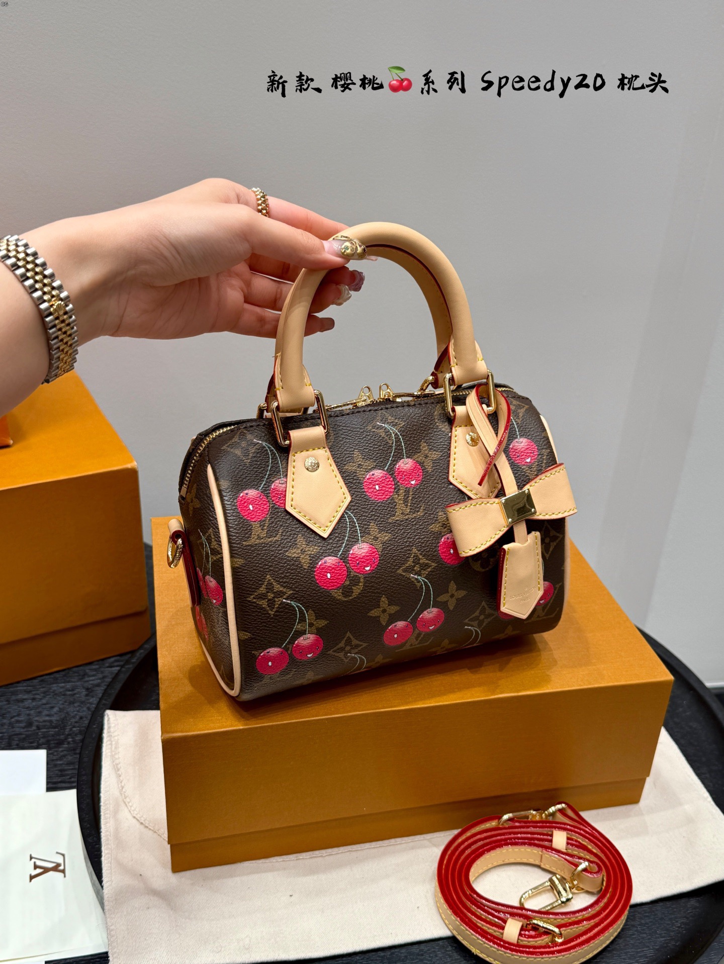 DetailWho Carried Cute Out on the Street Tote Pillow BagLv and Takashi Murakami's joint limited edition.The combination of cherries and classic flowers makes the bag cute and playful.Full of girlishnessSize 20*13cm