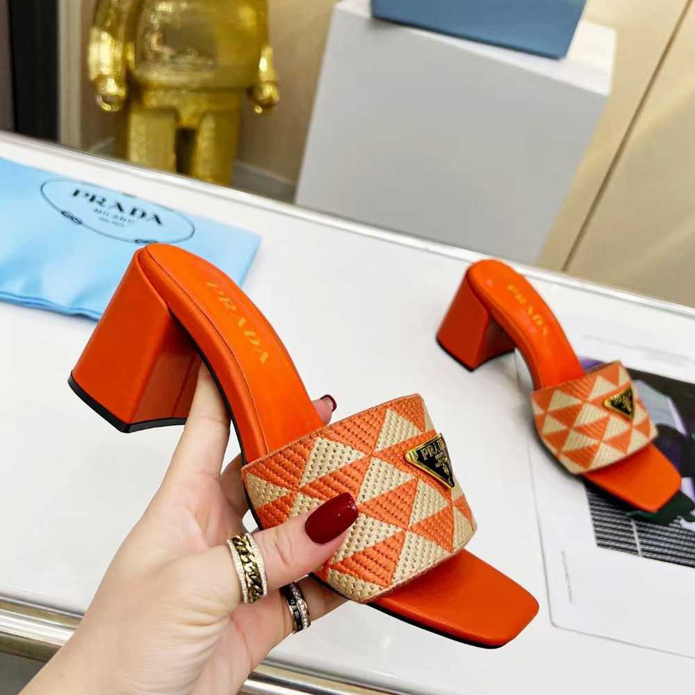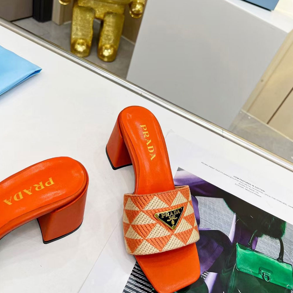Prada Fabric Chunky Heels Sandals Slide