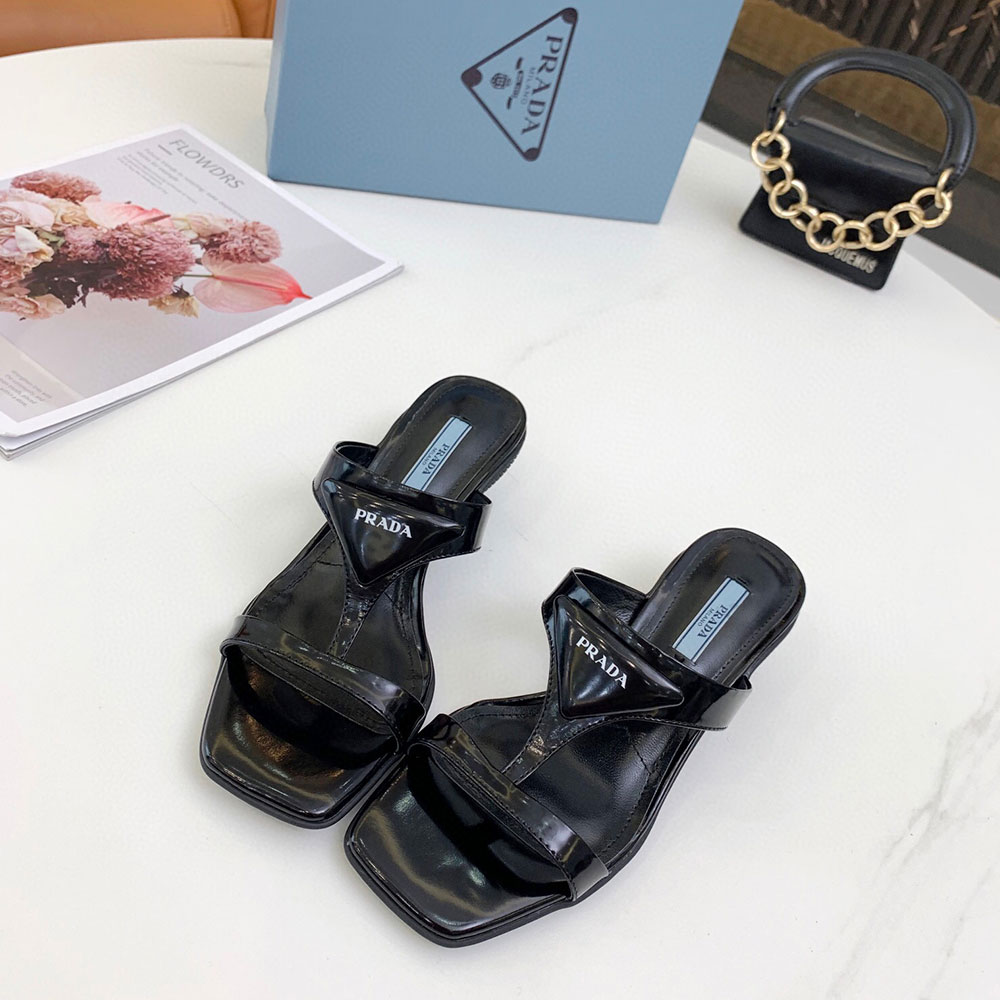 Prada Polished Leather Sandals Slide
