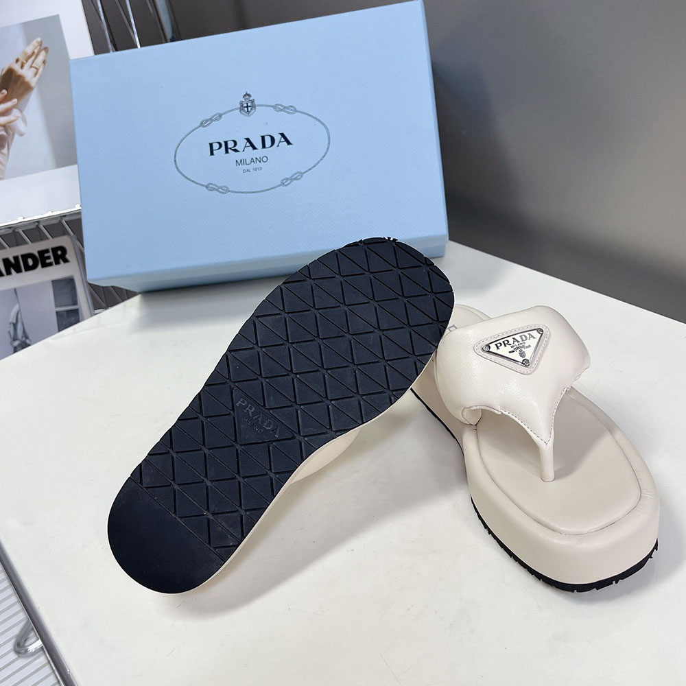 Prada Soft-Soled Leather Flip-Flops Slide Sandal