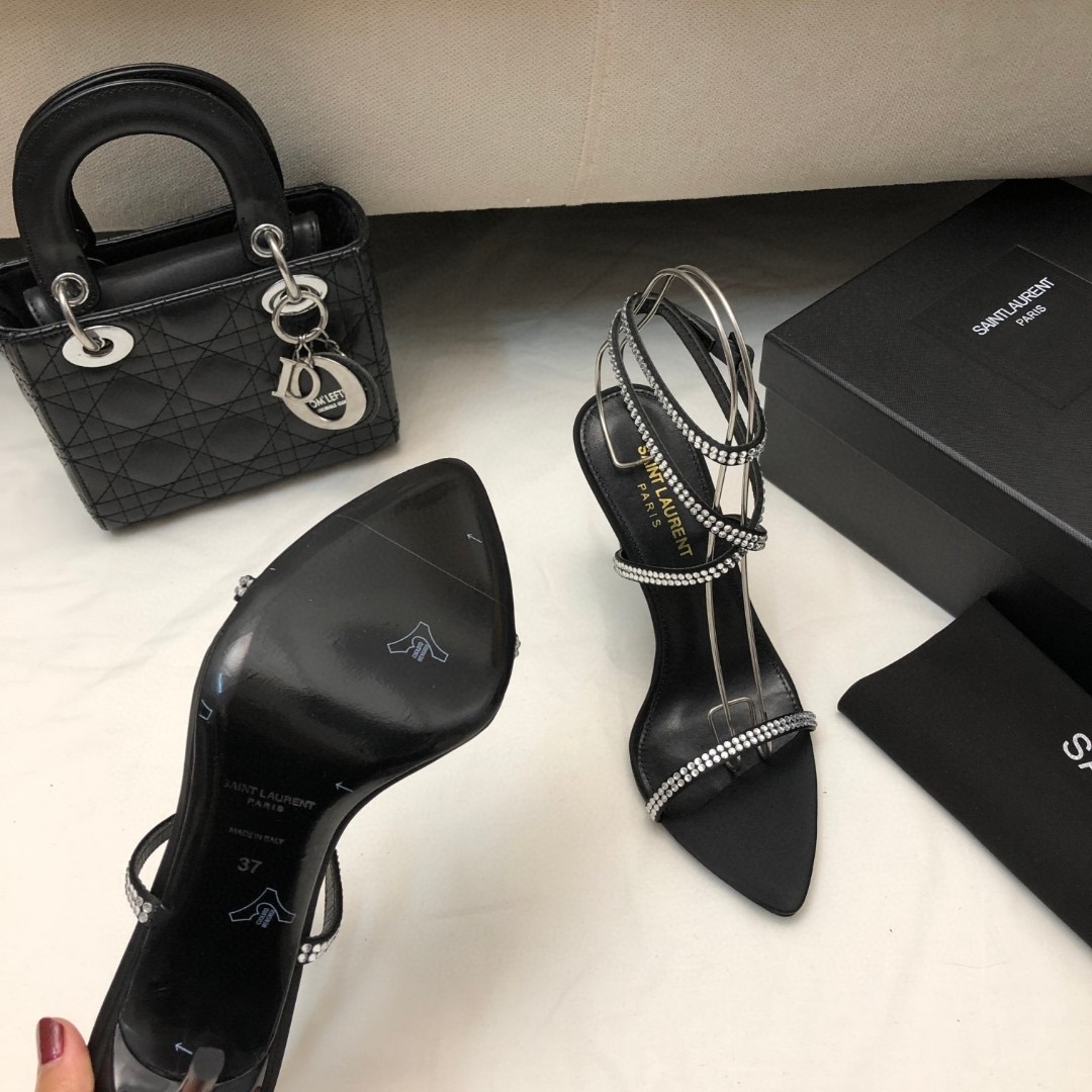 Saint Laurent YSL Rhinestone Set With Buckle Heels 10.5CM Slide Heels