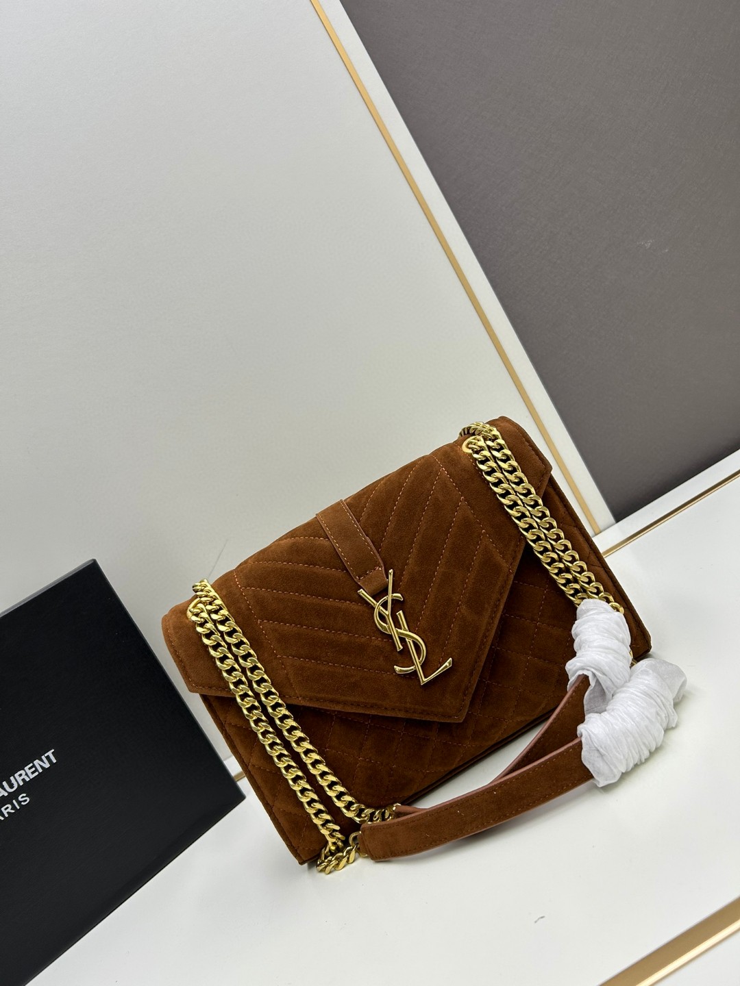 • Saint Laurent YSL Suede Envelope Bag