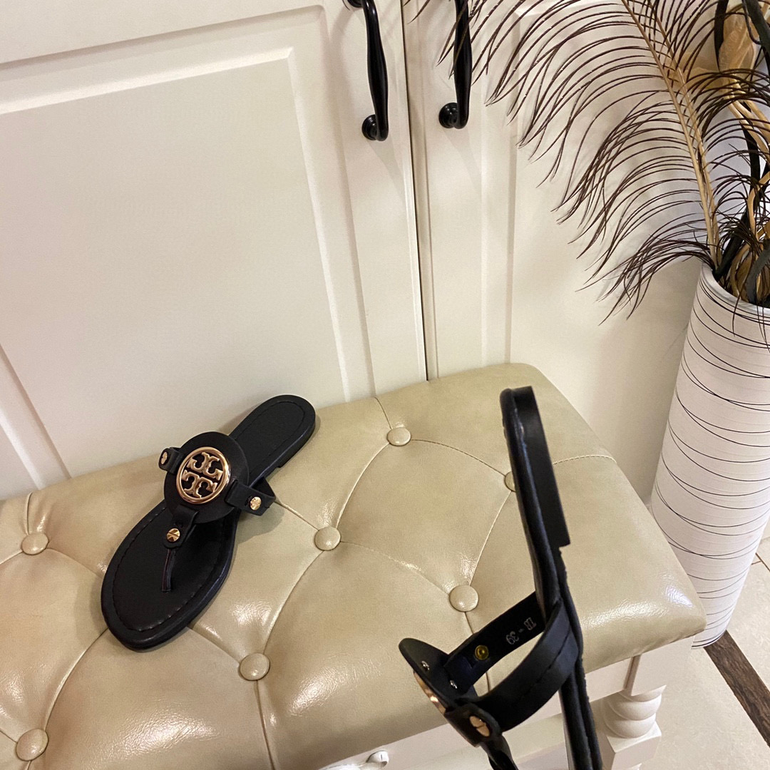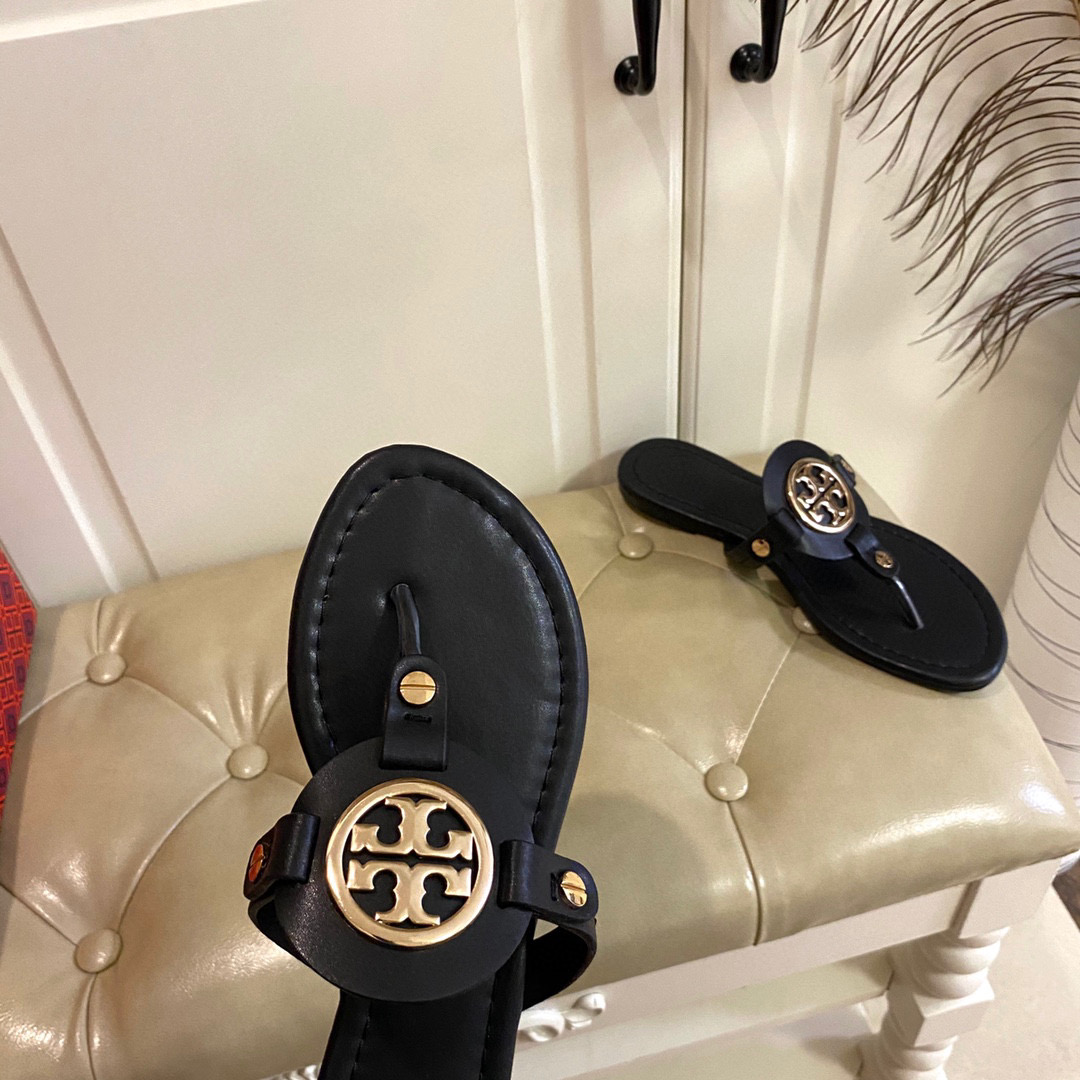 Tory Burch Leather Metal Logo Flip-flops Sandals Slide