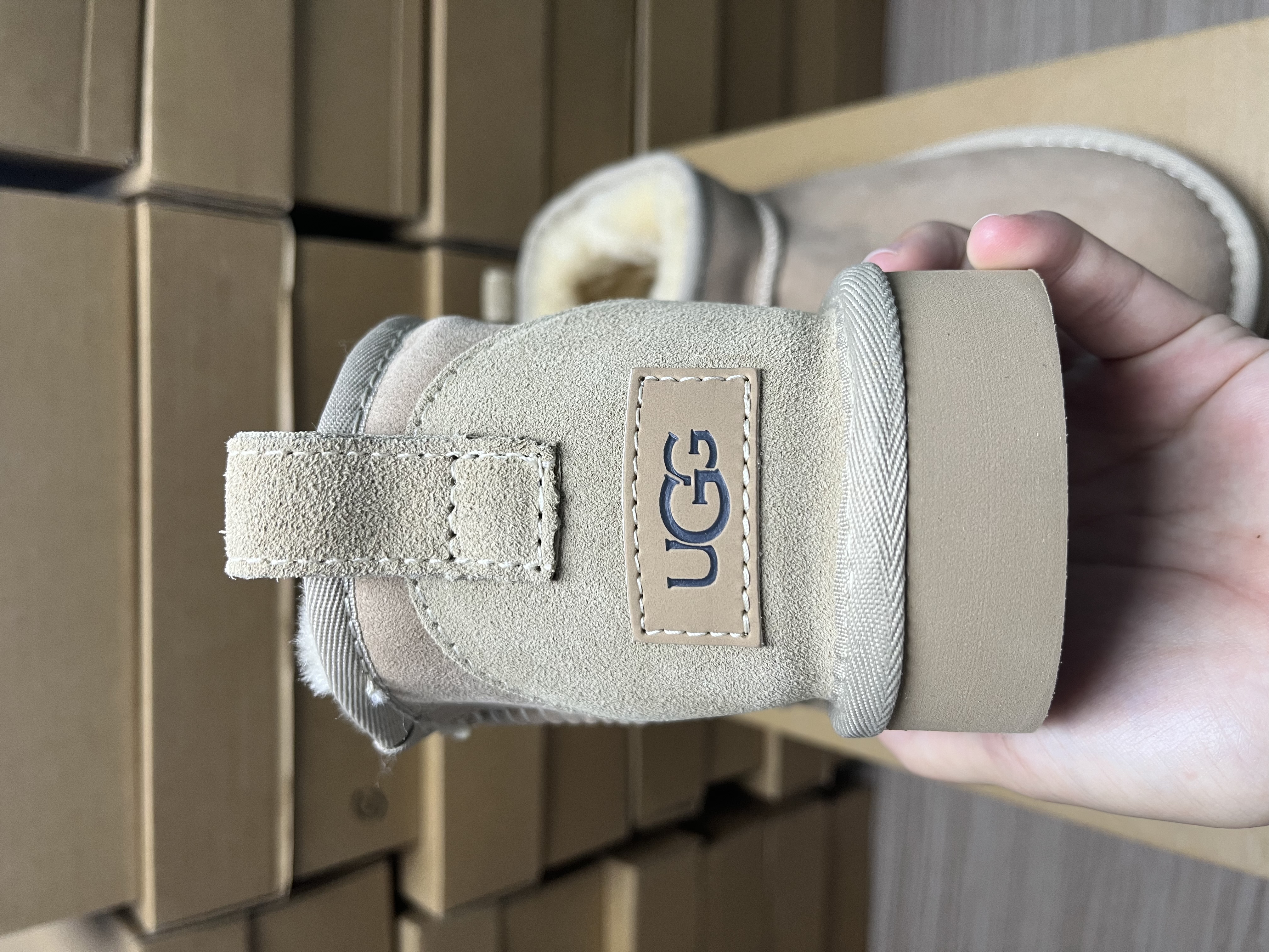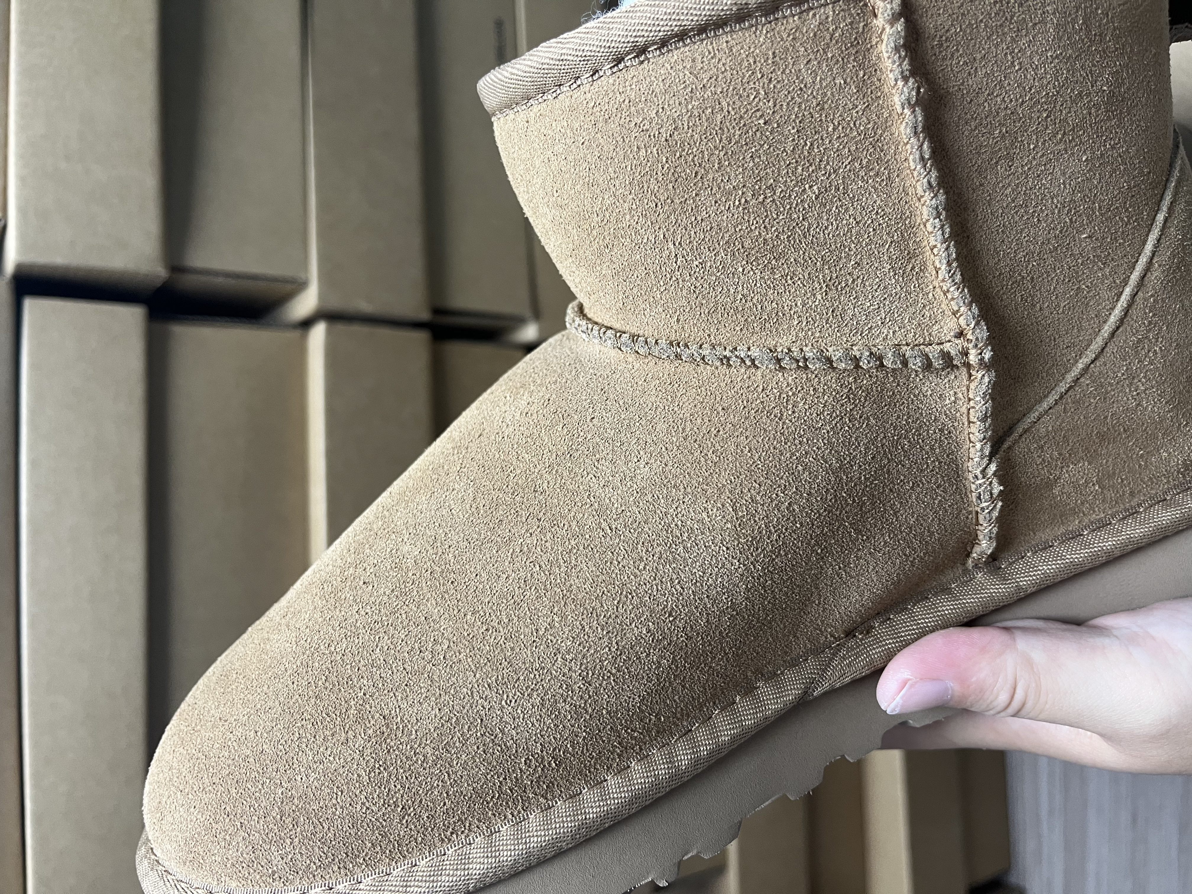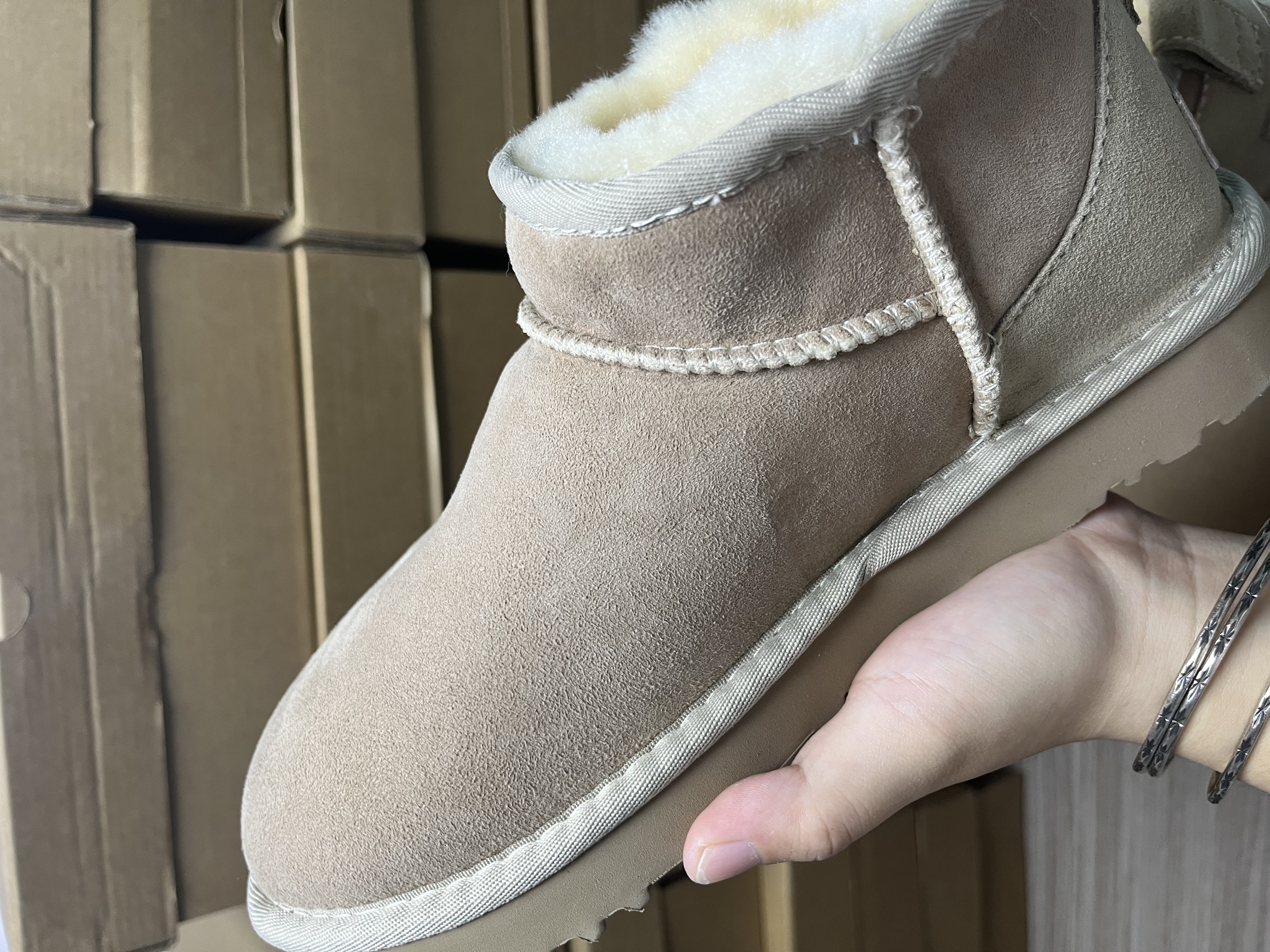 The upper is made of genuine leather and the lining is made of warm wool.