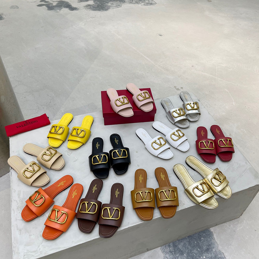 • Valentino Leather Casual Fashion Flip-Flops Slide Sandal